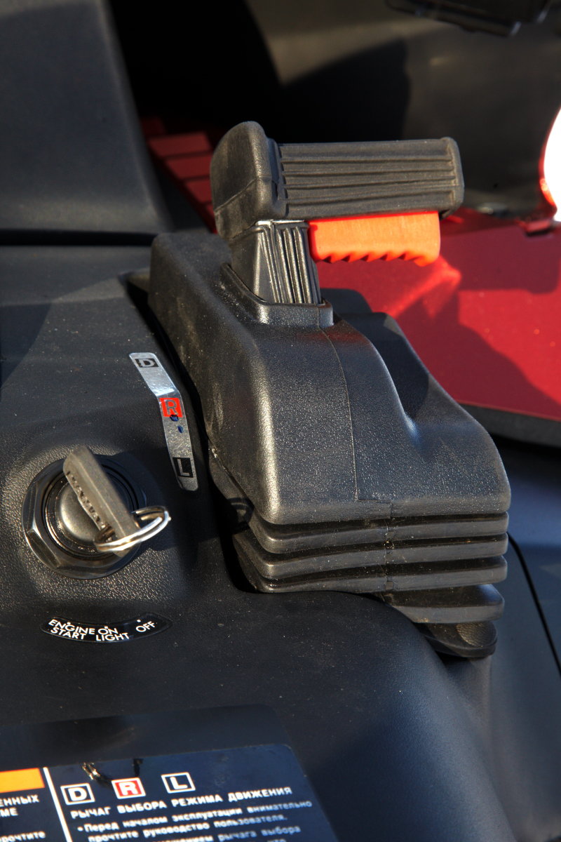 Выбором режимов трансмиссии «заведует» старый добрый селектор в виде перевернутой буквы «L». Он и выглядит стильно (для тех, кому по душе несколько спартанский минимализм), и управляться с ним в толстых снегоходных перчатках очень удобно. Особенно, когда едешь стоя, опираясь одной ногой на подножку и коленом другой – на сиденье.