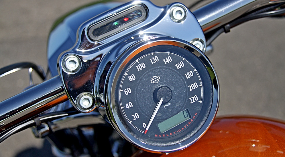 На ходу, в отличие от семейств Dyna или Softail, вибрации двигателя не уходят полностью. Они снижаются относительно холостого хода, но отчетливо чувствуются на руле, подножках и сиденье. Пронизывают все тело приятной дрожью и ощущением того, что ты едешь на железе, а не на каком-нибудь попсовом куске пластика. Тем не менее, во всем остальном «Спортстер» ведет себя очень собранно и современно.