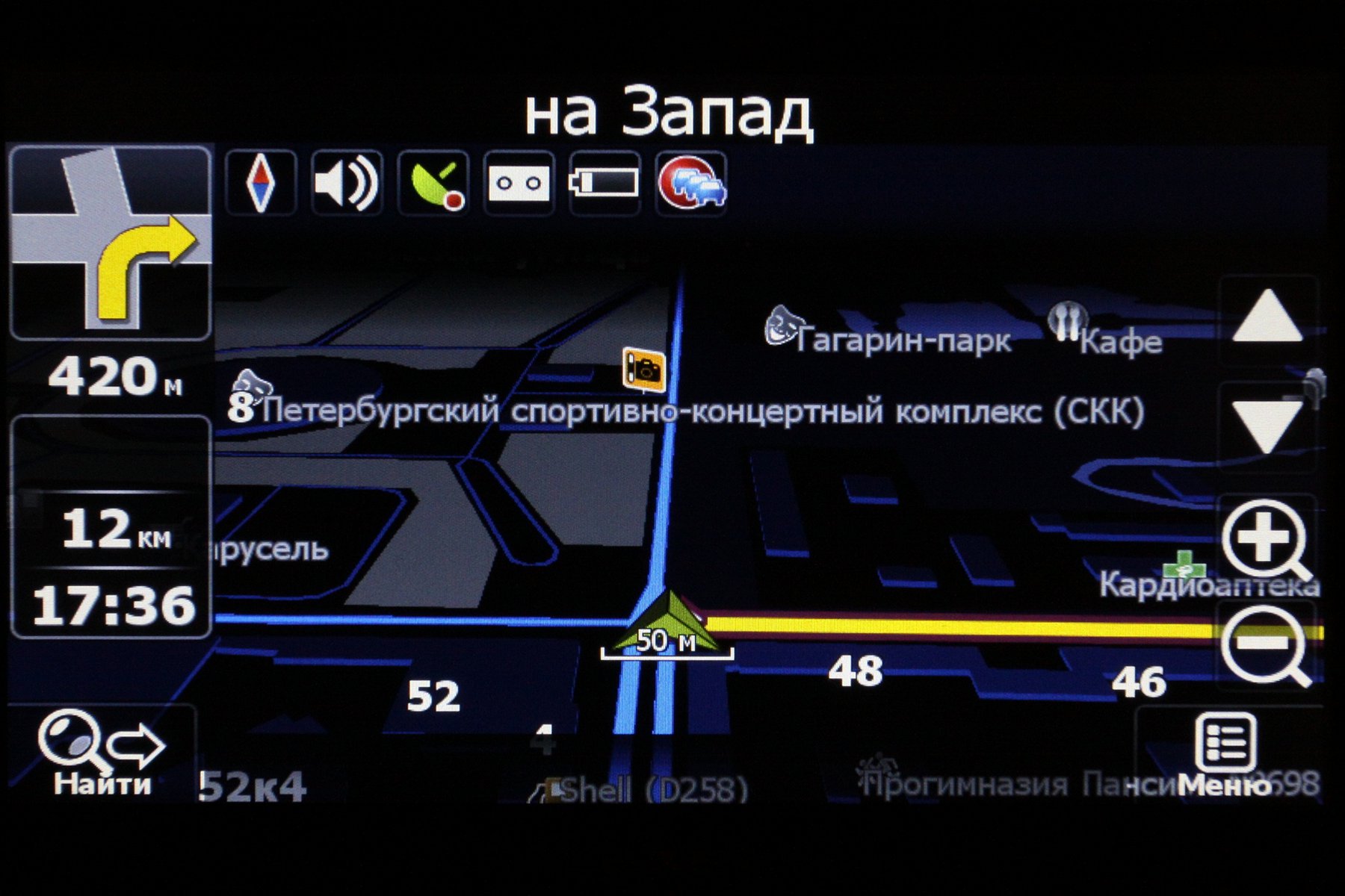 Нельзя не отметить, что за счет большого экрана, карта читается просто великолепно, не надо специально приближаться и приглядываться к экрану. все объекты и подписи хорошо видны при обычной водительской посадке.