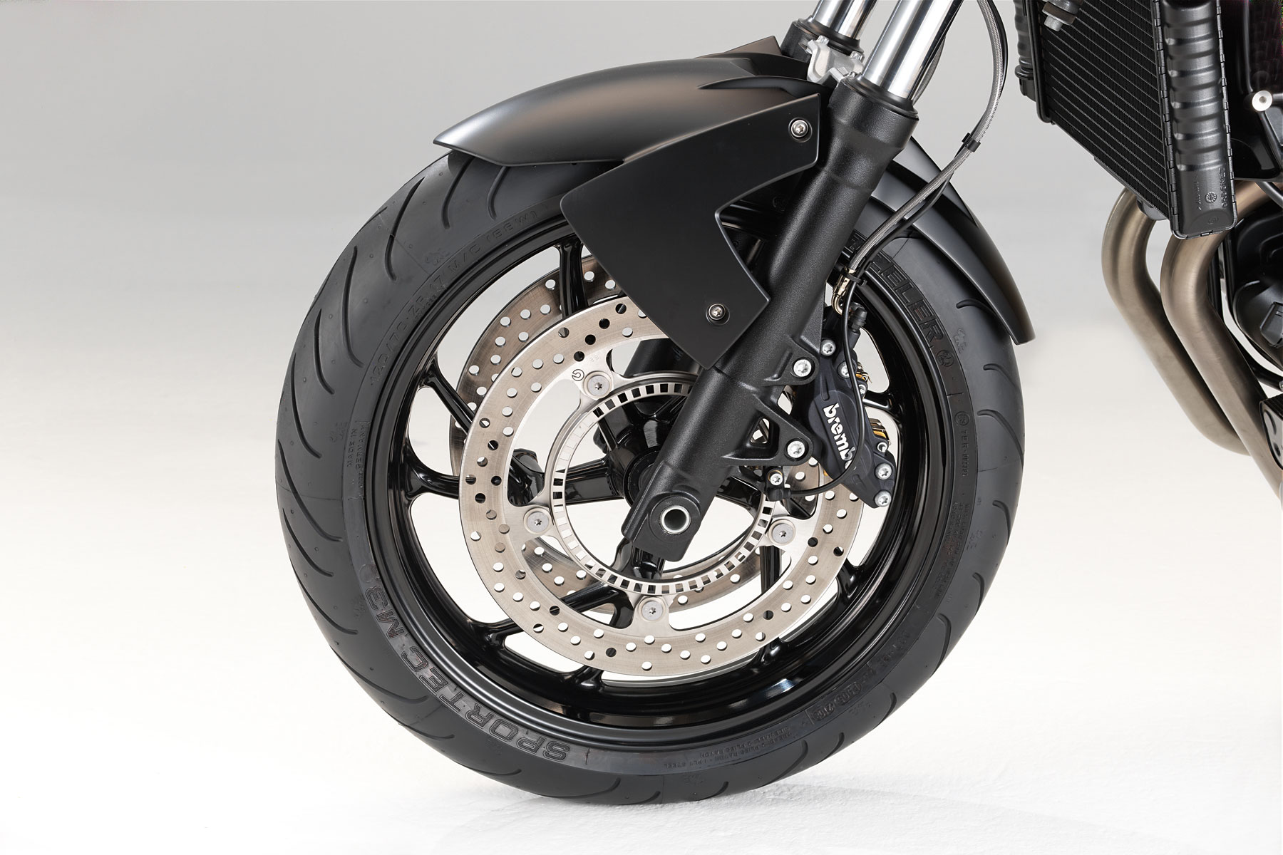 Передние тормоза: два диска, механизмы от Brembo. ABS – в качестве опции |