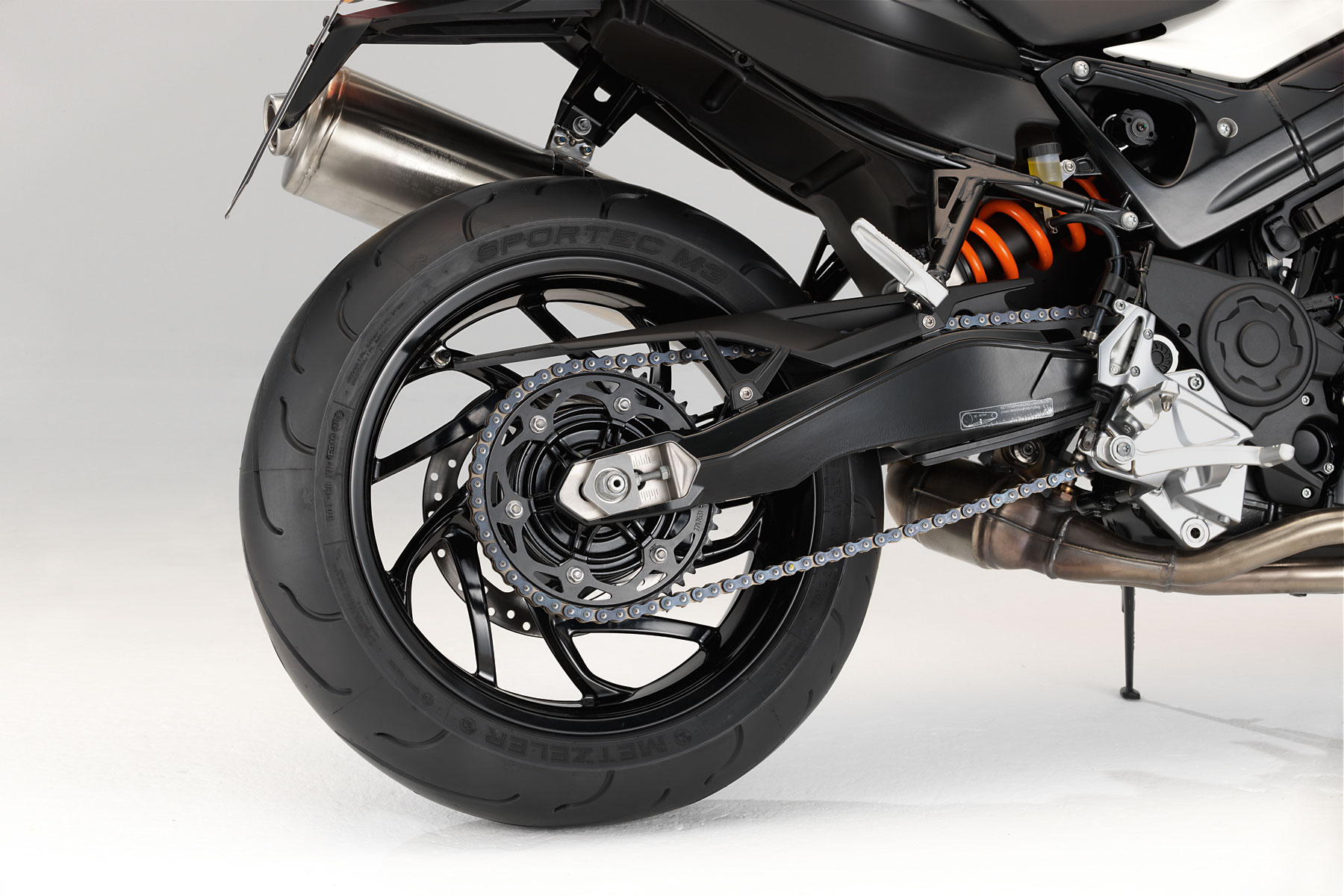 Новый F 800 R выйдет на рынок в трех вариантах окраски: White Alpine, Fire Orange и White Aluminium (металлик).