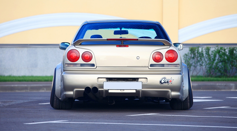 Что касается внешности автомобиля, то вначале был куплен передний бампер C-West, оригинальные пороги и карбоновый капот. Пороги сразу же были занижены на 3 см от стандартной установки. Задние и передние крылья раскатали под колеса большей ширины. В целом «морда» обычного 34-го «Ская» Виталию не нравилась, но ставить широкую «морду» GT-R, как это делало большинство, он не хотел: задняя часть оставалась узкой, и машина выглядела как головастик.