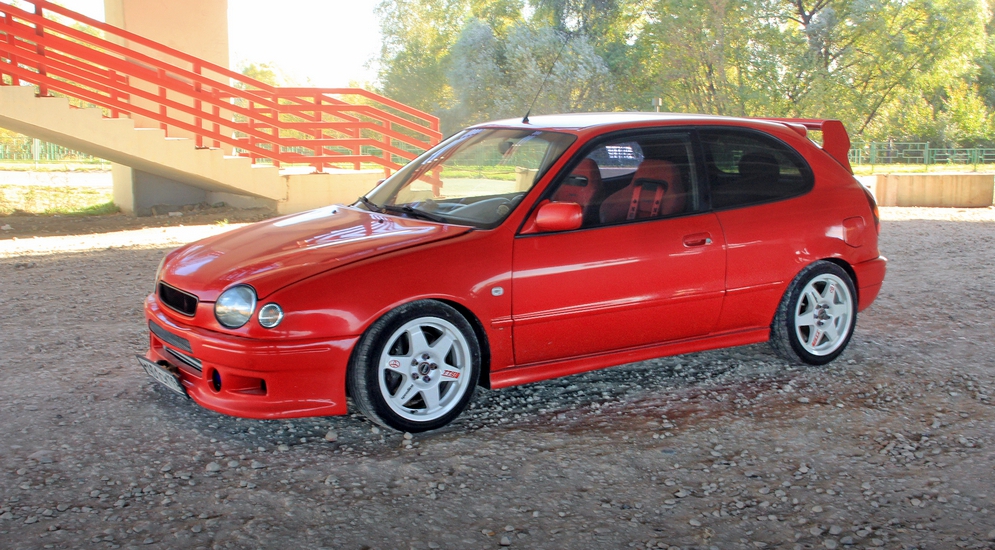 В 2006 году после продажи ВАЗовской «восьмёрки» (ах, как же это знакомо!) Александр ушел в поиски надёжного, недорогого, но обладающего изюминкой автомобиля. Все три критерия воедино смог собрать в себе лишь один – трёхдверный хэтчбек Toyota Corolla в интересной комплектации G6. После встречи с ней главный конкурент, Honda Civic EK, был вычеркнут из списка претендентов на покупку. Несмотря на меньший по объёму двигатель 1,3 (против 1,4 у Сивика), Королла обладала практически аналогичной мощностью, шестиступенчатой коробкой передач (отсюда и название комплектации), салоном разработки канонического бренда Recaro и рядом других «бонусов», делавших выбор в её пользу очевидным. За три года владения той «глазастой» Corolla Александр привнёс в неё массу изменений, но главное – полюбил раз и навсегда.
