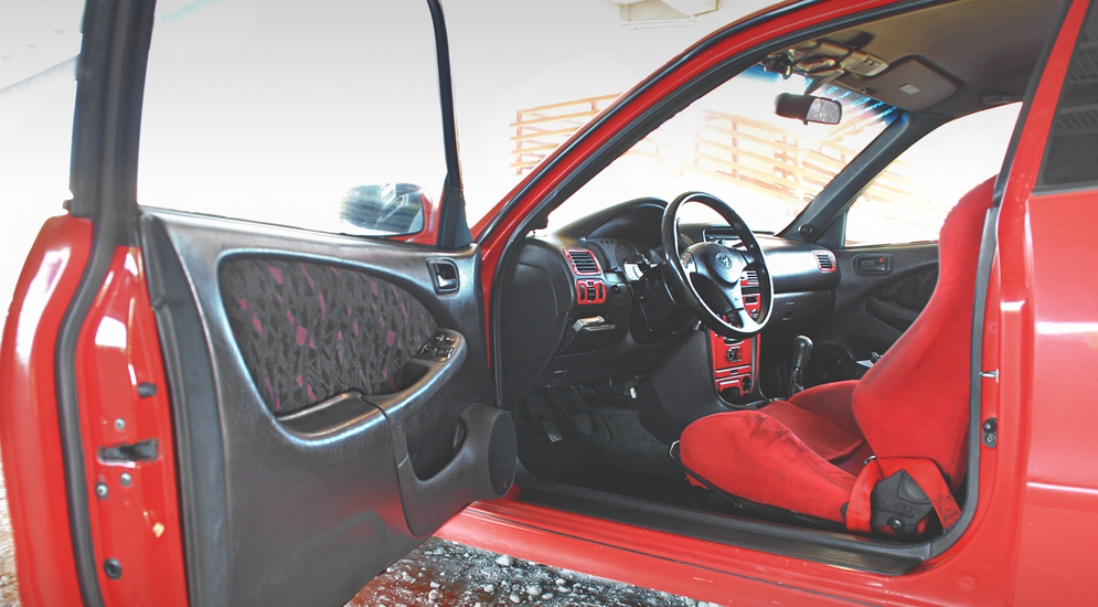 Наслаждение купленным автомобилем продлилось недолго, несмотря на то что он и в заводском состоянии наполнен «ништяками». Corolla G6R служила омологационной версией для успешно выступавшей в мировом ралли 1998 и 1999 годов Corolla WRC. Список её отличий от стока внушителен: алюминиевый капот, заниженная на 30 мм подвеска, дисковые задние тормоза, ремни безопасности красного цвета и многое другое. Спустя год после покупки в подкапотном пространстве свое место занял новый двигатель 4A-GE Black Top, который смог обеспечить вожделенную динамику – в спринте «0-100» Corolla начала выезжать из восьми секунд. Такому показателю позавидуют и многие современные компактные хэтчбеки, но поводов останавливаться на достигнутом у Александра не появилось.