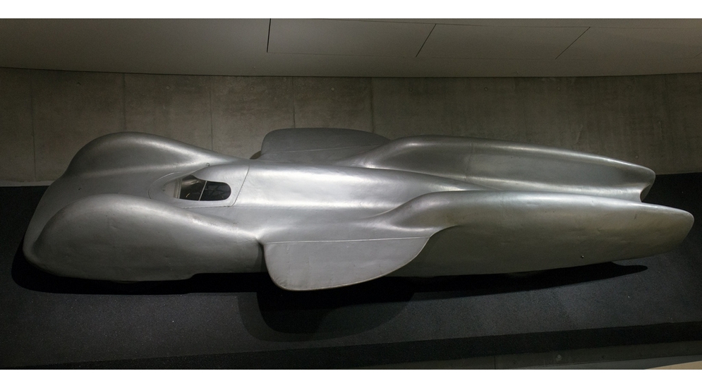 Узкий и длинный (8,2 м), как стрела, болид весил 2,9 тонны и для лучшей стабилизации был снабжен тремя осями, две из которых, задние, были ведущими. Жаль, что проект T80 так и не был испытан на треке. Теперь его кузов находится в музее Mercedes-Benz, являясь предметом особой гордости компании.