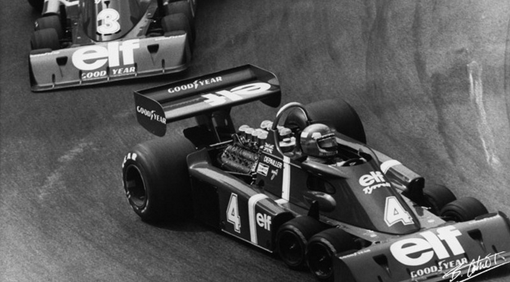 Но самой драматичной историей, связанной с шестью колесами, является случай с моделью Р34 Tyrell. Дерек Гарнер, занимавший с 1970 года должность главного конструктора команды Tyrell, всегда мыслил на опережение. На болидах, к созданию которых он приложил руку, пилот Джеки Стюарт завоевал чемпионские титулы (1971 г., 1973 г.). Однако «гонка вооружений» в автоспорте была так тяжела, что вскоре у мистера Гарнера кончились все традиционные идеи по увеличению производительности контрактного мотора Ford Cosworth и модификации прочих агрегатов.