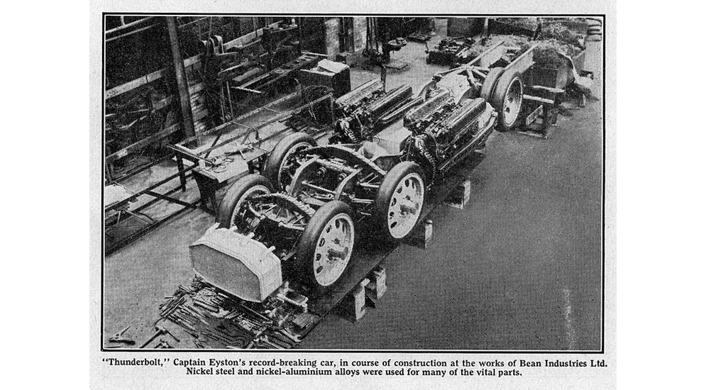 Итак, работа над удивительной машиной по кличке Thunderbolt (англ., «Молния») закипела. Ее шасси и кузовные панели были построены на одной из фабрик Bean Cars – английской автомобильной компании 20-х годов прошлого века. Для формовки деталей корпуса применялся новейший, очень легкий сплав на основе магния и алюминия. В итоге Thunderbolt оказался больше похож на самолет без крыльев, чем на автомобиль, особенно со своим хвостовым оперением, игравшим роль аэродинамического тормоза.