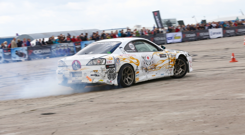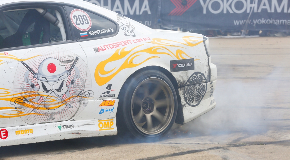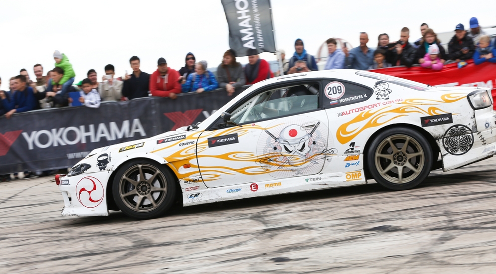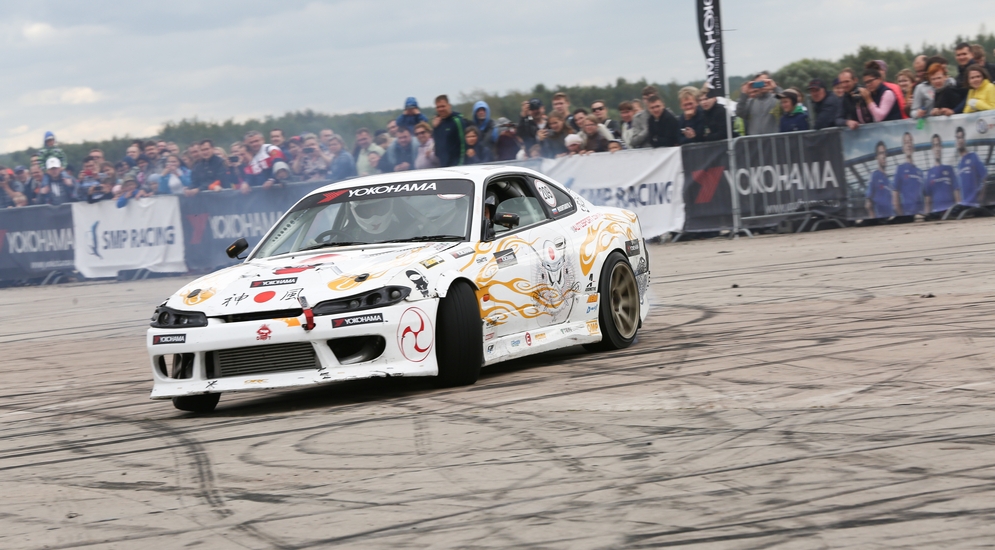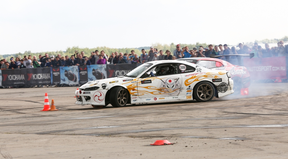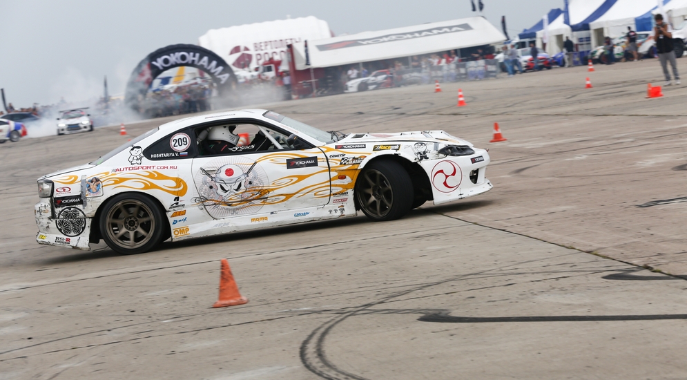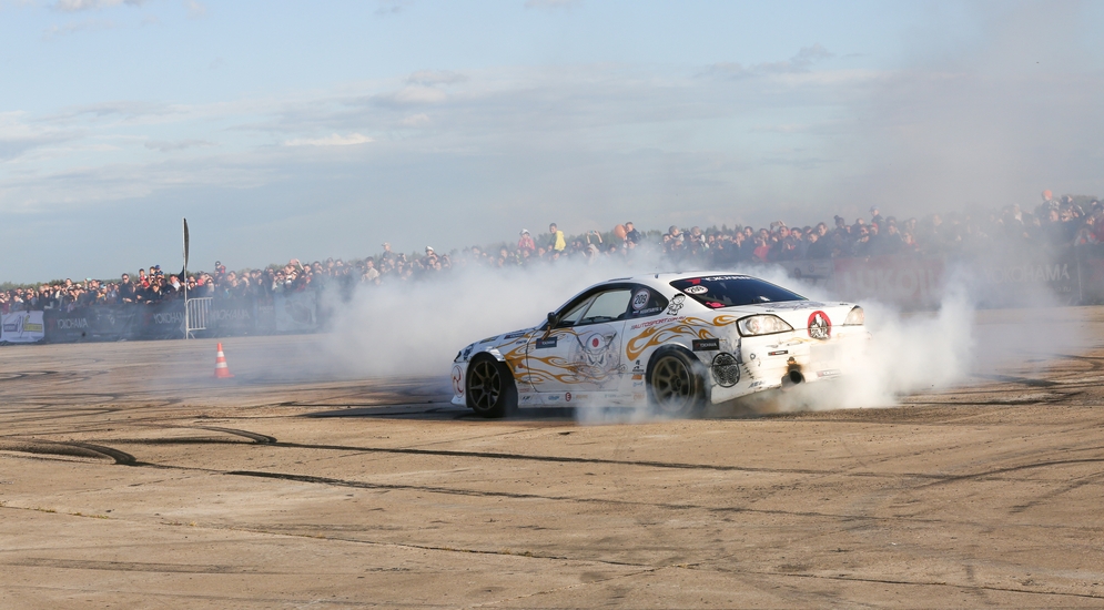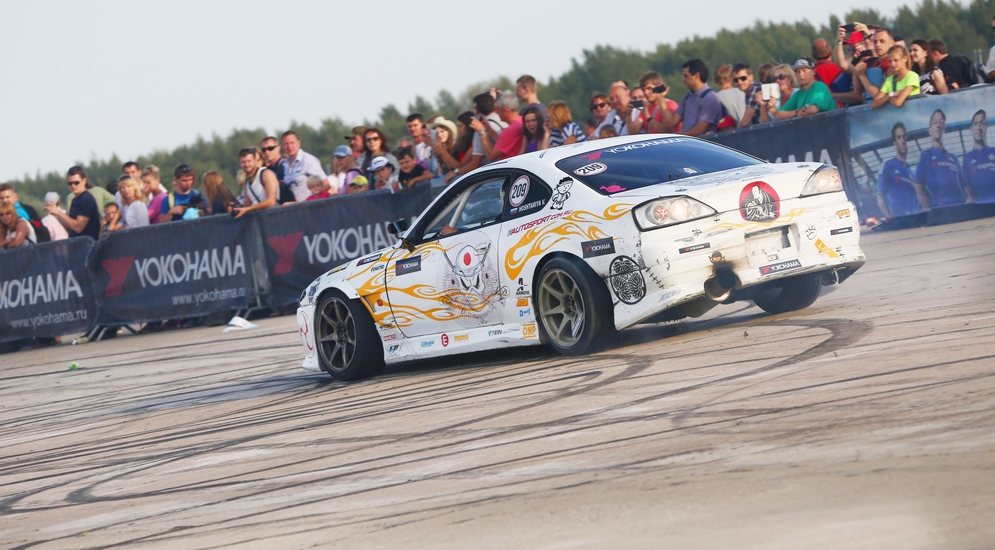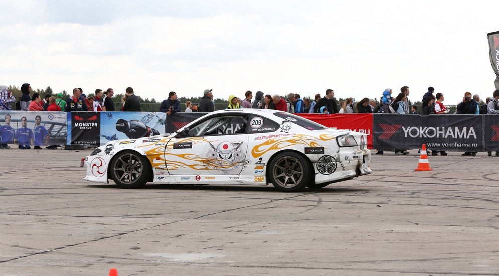Спустя девять месяцев автомобиль был полностью подготовлен и отправился на настройку на мощностной стенд. На дворе стояла весна 2013 года. Во время настройки находившиеся в сервисе по соседству ребята из команды GT-Shop подошли к Валере и поинтересовались, поедет ли он участвовать в дружественных дрифт «покатушах» «матсури», а потом и в первом этапе Российской Дрифт Серии. «Почему бы и не поучаствовать!» — ответил Валера. «А дрифтить-то ты умеешь?» — раздалось в ответ. «Нет!» — признался Валера, «но «пятаки» могу покрутить». «Ты молодец! Мы научим и подскажем», — поддержали его ребята из дрифт-тусовки. В тот день мощностной стенд показал результат в 520 лошадиных сил при давлении наддува в 1 бар.При таких обстоятельствах наш герой и отправился на автодром ADM Raceway в подмосковное Мячково. Поначалу было сложно: машину постоянно разворачивало, а из-за достаточно мягкой подвески она сильно кренилась и вела себя непредсказуемо. Другие пилоты постоянно подсказывали, что делать, и делились с Валерой необходимой информацией по регулированию автомобилем в управляемом заносе. Так все и началось. После тренировок и соревнований пожилое сцепление HKS, доставшееся Валере вместе с кузовом автомобиля, приказало долго жить, и его пришлось заменить на новую двухдисковую керамику ORC. Проведя небольшое ТО своей Сильвии, Валера после первого этапа РДС отправился и на второй – на трассу «Нижегородское кольцо». Чуть позже, на фестивале японских автомобилей JapCarFest, Валера познакомился с организаторами дрифт-чемпионата РДА Запад и без сомнения параллельно с РДС начал участвовать и в нем. Весь 2013 год он посещал всевозможные дрифт-соревнования, а также учился контролировать автомобиль в управляемом заносе ранним утром на парковках города. Silvia, подвеска которой была достаточно мягкой, а выворот колес лишь немного отличался от стандартного за счет установки дополнительных проставок, с большим трудом поддавалась дрессировке, и в конце сезона Валера решил принять кардинальные меры. При подготовке к новому боевому году подвеску Tein с параметрами жесткости: 8 – перед, 6 – зад, поменяли на D2 с параметрами 10,5 и 9,5 соответственно, а заодно установили рычаги D-Max и удлинили нижние рычаги для увеличения выворота колес. Ну а для спокойствия сварили передний баш-бар.