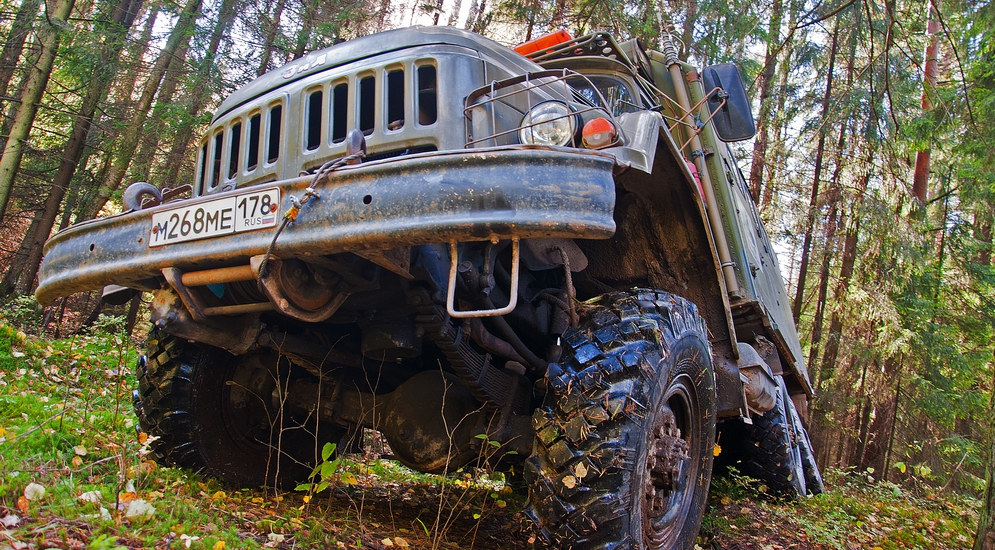 «... настоящую русскую грязь (нет, не грязь, грязюку!) мы нашли. Но «посадить» в ней машину так и не получилось ...» — плохо искали. Садится также, как все его «одноклассники», по базе и весу — но, раньше «Урала» и позже «КрАЗа». В качестве эвакуатора в трофи-рейдах работает только по ровному. В горах кое-как сам себя везёт. Без передка абсолютно беспомощен, 15 градусов подъёма из реки по мокрому камню не берёт, даже стравившись. В густом лесу бесполезен из-за габаритов, не напилишься коридора для него.
