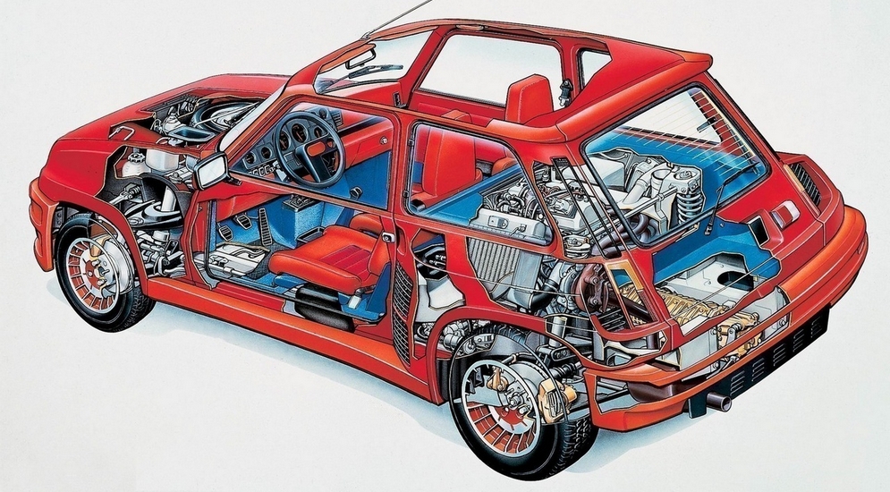Такая схема была довольно распространенной – например, похожим образом был устроен легендарный Renault 5 Alpine Turbo или Peugeot 205 T16