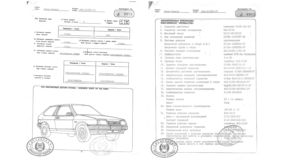 ВАЗ-21083-37 "Кубка Лада" отличался от исходника куда меньше, чем заряженные "восьмерки" именитых гонщиков. Кузов усилили и сделали безопаснее с помощью вварного каркаса, под капотом появился 16-клапанный мотор от "двенадцатой", в трансмиссии установили так называемый "седьмой" ряд, а впереди применили вентилируемые тормоза (от "десятки"). Подвеска была чуть более жесткой и заниженной в сравнении со стандартом, а регламент Кубка предполагал для всех автомобилей использование единственных шин производителя "Матадор-Омскшина" вполне ординарной размерности 185/65 R14.