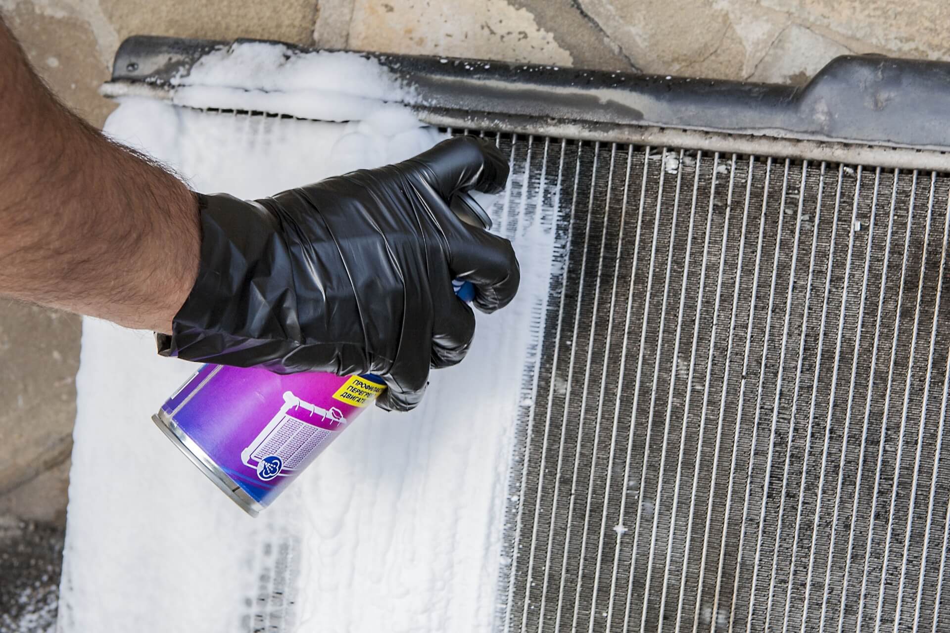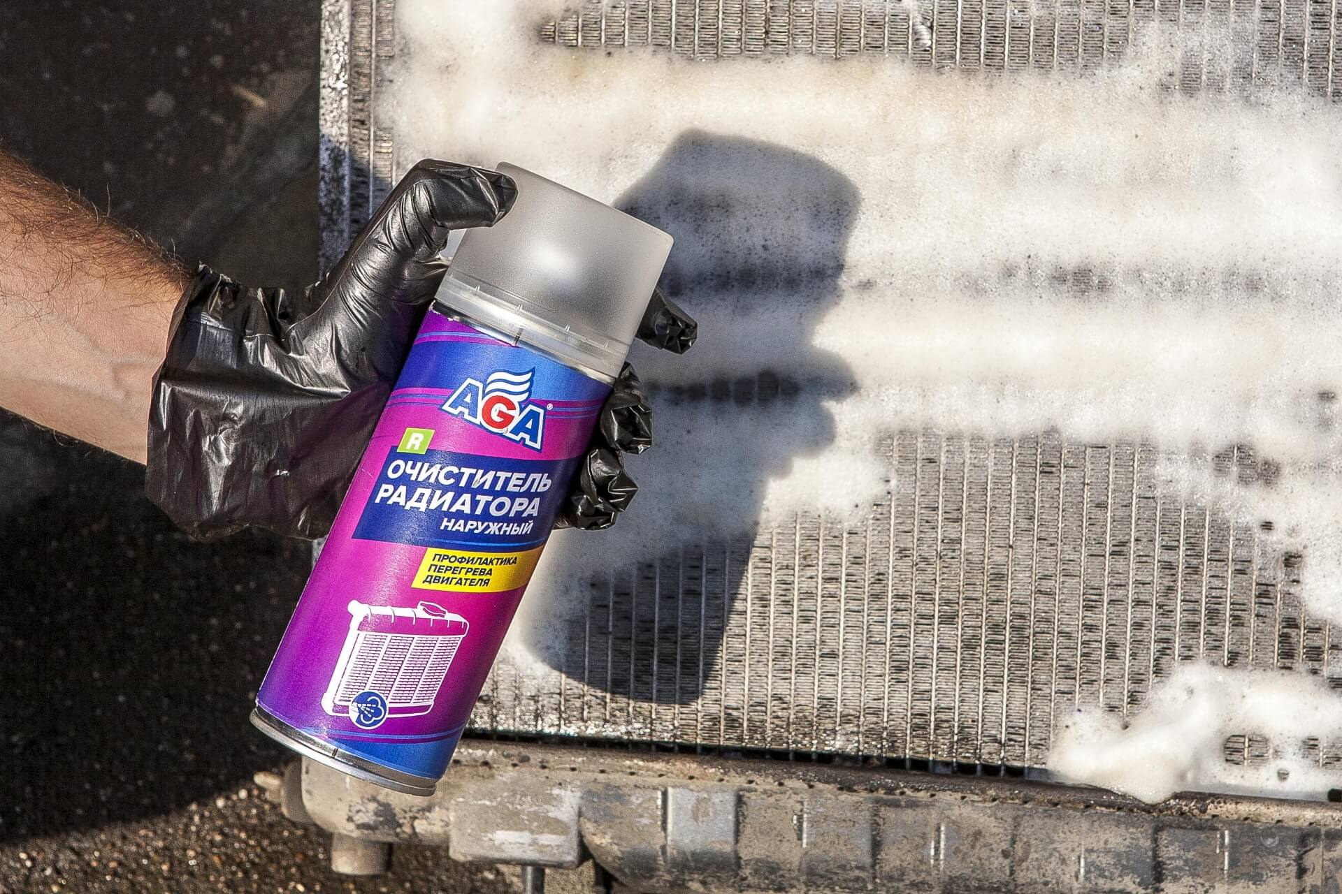 Можно ли очистить радиатор с помощью AGA706R на автомойке – обычной или самообслуживания? Или на даче/в гараже, где есть бытовой моечный аппарат высокого давления? Этот вопрос актуален для любого аналогичного препарата и не зависит от его состава – все дело в компоновке передней части автомобиля и степени загрязнения.