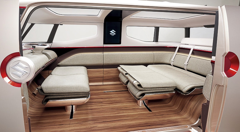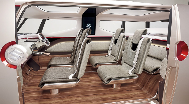 Автомобиль имеет габариты 4 200 х 1 695 х 1 815 мм и, в отличие от двух других токийских концептов Suzuki, «смотрит» на мир не широко распахнутыми, а решительно прищуренными светодиодными фарами. Между тем суровость его облика, скорее всего, объясняется стремлением внести некое разнообразие, ведь главная фишка этого микровэна – универсальность.