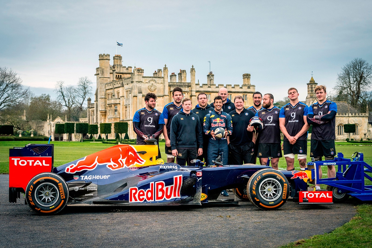 Впрочем, противниками болида RB8, который принёс Себастьяну Феттелю и команде титулы чемпионов мира в 2012 году, стали не совсем обычные люди. Соперниками машины стали... игроки английского регбийного клуба Bath.