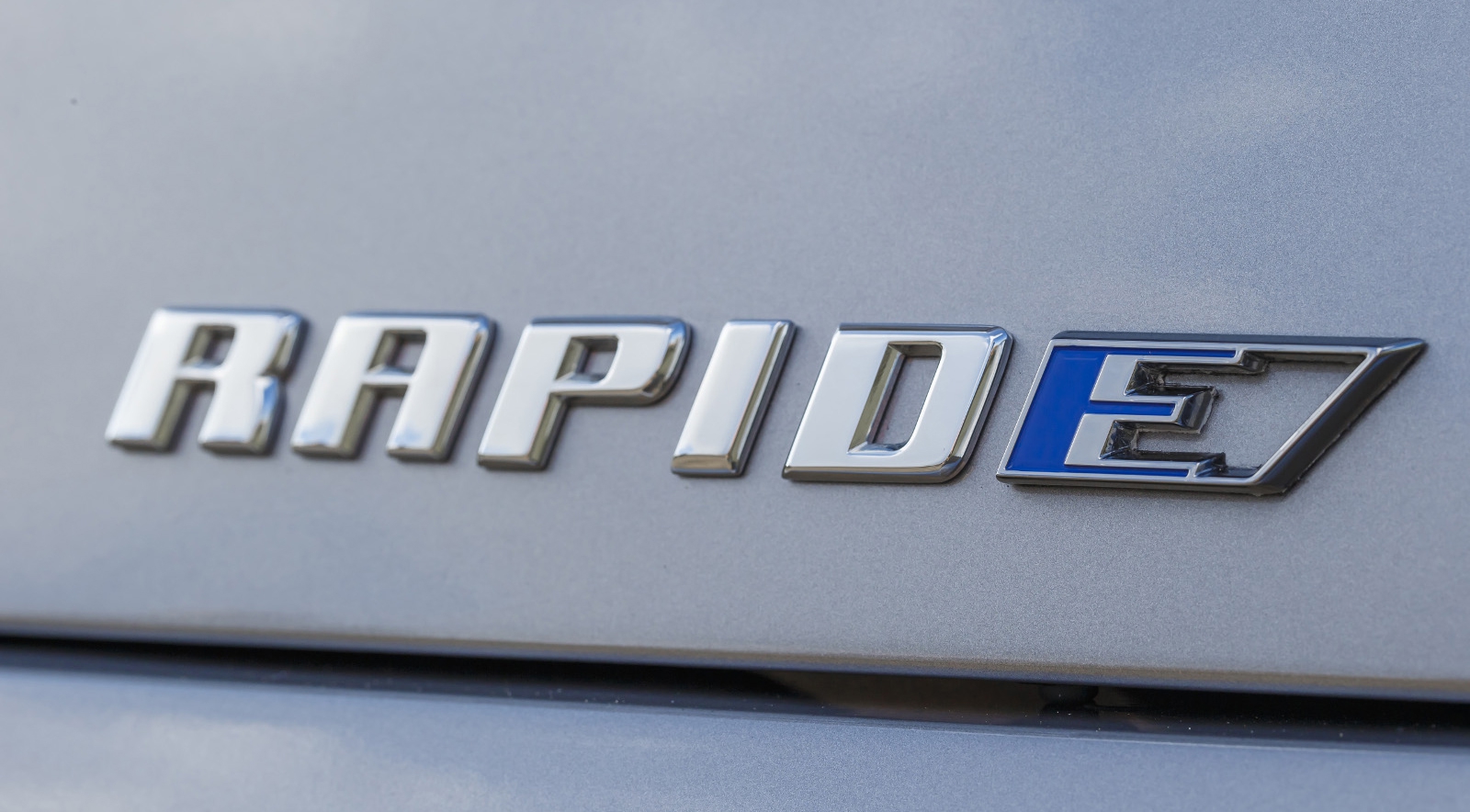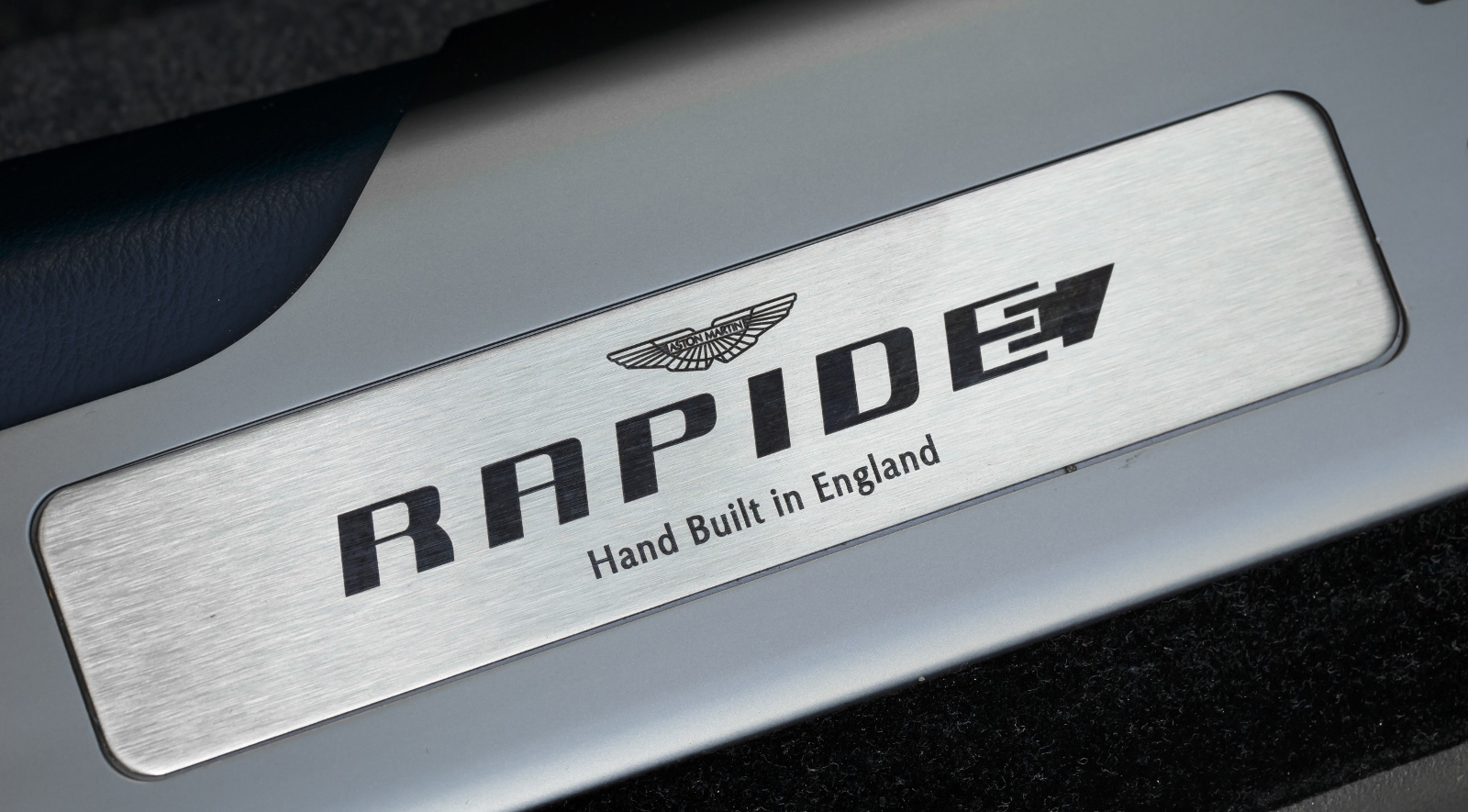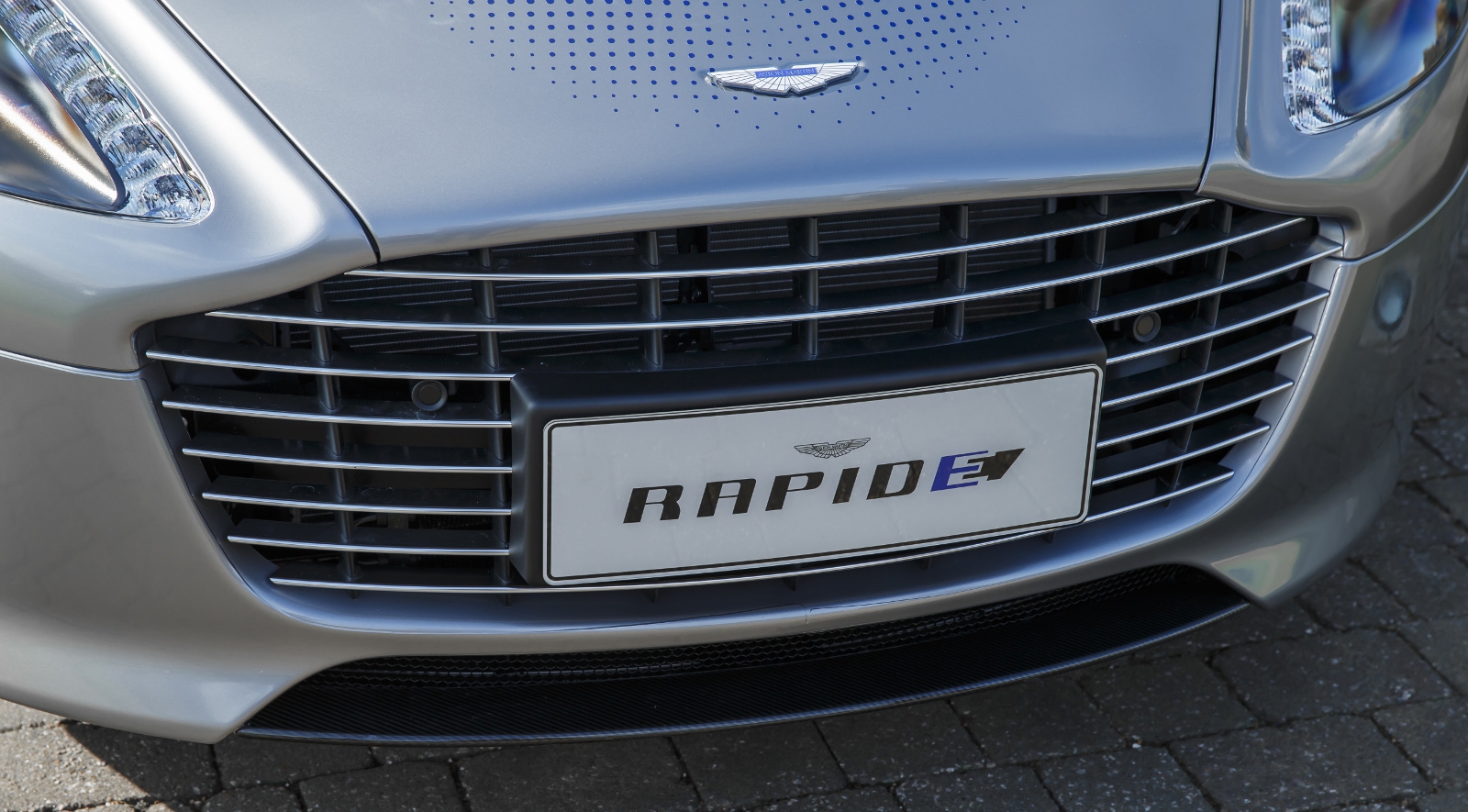 Внешне новый Aston Martin RapidE не отличается от Rapide S, на базе которого он построен. Индивидуальности постарались придать при помощи акцентов голубого цвета в шильдиках, а также "шоукарной" ливрее в этих же тонах.
