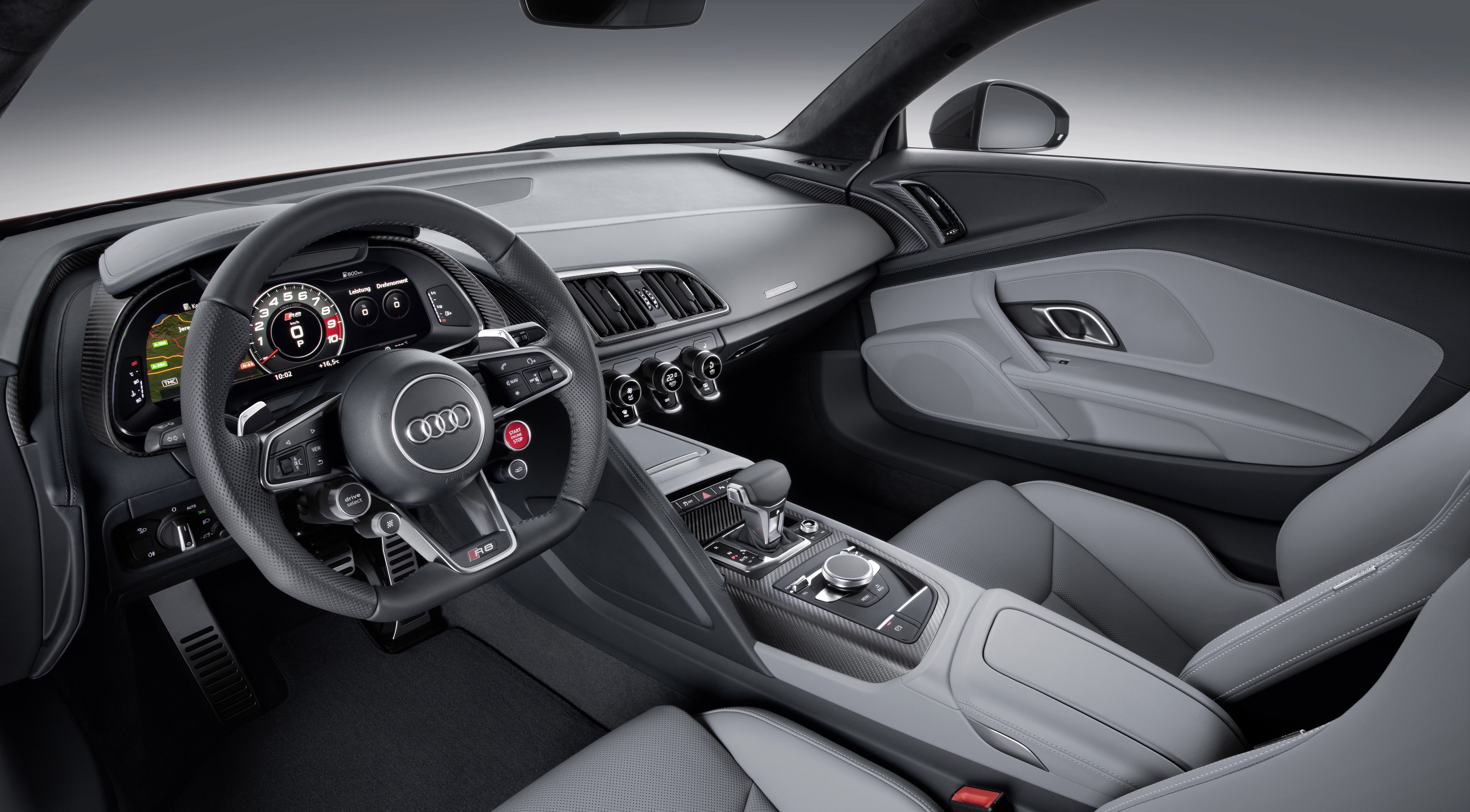 До первых 100 км/ч Audi R8 V10 разгонится за 3.5 секунды, более мощный вариант V10 plus — за 3.2 секунды. Пиковый крутящий момент равен 540 и 560 Нм соответственно. В обычном режиме тяга сосредоточена на заднем приводе, при необходимости весь потенциал может быть переброшен на передние колёса.