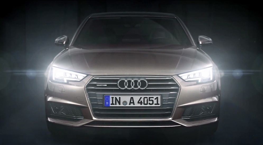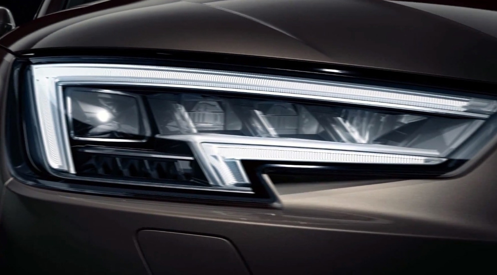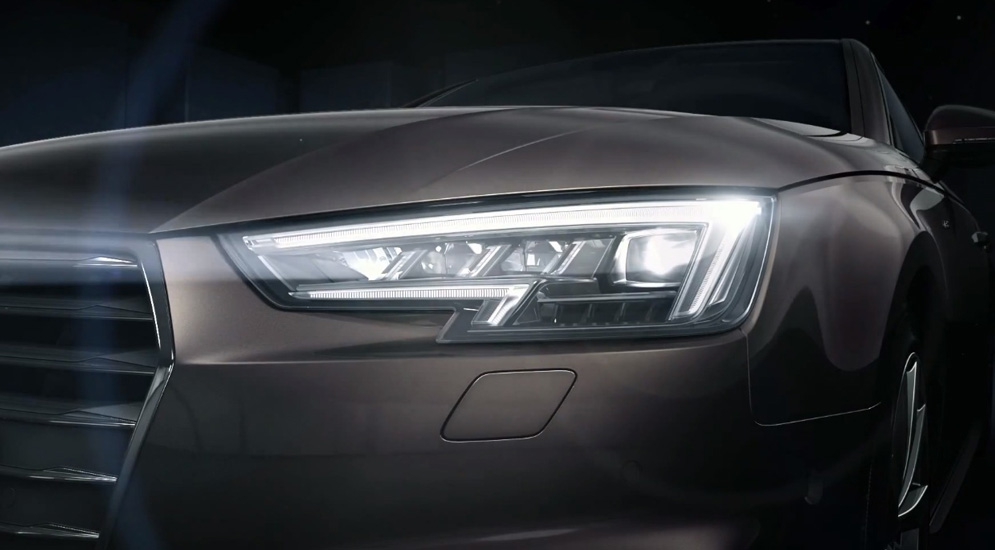 Новая Audi A4 в "базе" оснащается ксеноновыми фарами, однако за дополнительную плату автомобилист может получить светодиодную или прогрессивную матричную LED-оптику. Световой поток ближнего света создаётся одиннадцатью светодиодами, потребляющими всего 20 Ватт, тогда как за дальний "отвечает" дюжина LED-элементов. Управление фарами головного света осуществляет электронный блок, который автоматически включает/выключает фары, переходит с дальнего света на ближний, а также регулирует интенсивность свечения диодов.