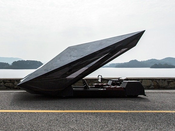 Итак, перед нами… Lamborghini Countach. А точнее, его минималистичный «ремейк», ведь ни одной общей детали нет ни во внешности, ни в салоне. Один шестиугольный руль чего стоит! Двери как таковые отсутствуют вовсе: чтобы сесть за руль, надо поднять весь кузов.