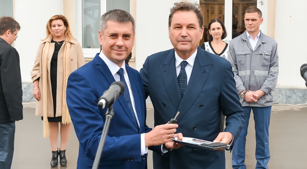 На фото: мэр Тольятти Сергей Андреев и президент АВТОВАЗа Бу Андерссон. Церемония передачи ключей от пяти Lada Vesta администрации города