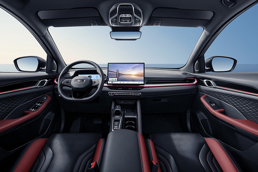 Если сравнивать с предыдущим паркетником белорусского бренда, то другими стали бамперы, радиаторная решетка, фары и задние фонари. На корме еще красуется светящаяся перемычка. Внутри Плюс тоже повторил свежий Coolray: в салоне появились новые передняя панель, приборка и мультимедиа, центральный тоннель.