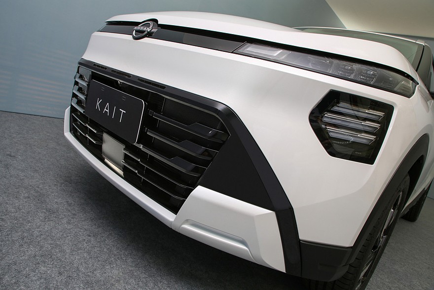 У Kait кузов от «первого» Kicks, но дизайн все же свой. Кроссоверу достались двухэтажная головная оптика, новые бамперы, капот и радиаторная решетка. Еще заменили багажную дверь и фонари, задний номерной знак перенесли ниже. Паркетник по умолчанию имеет 17-дюймовые колеса.