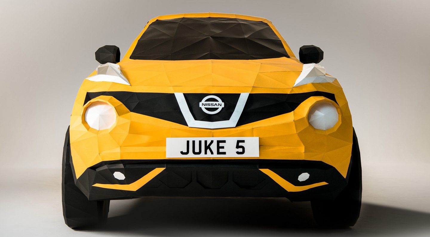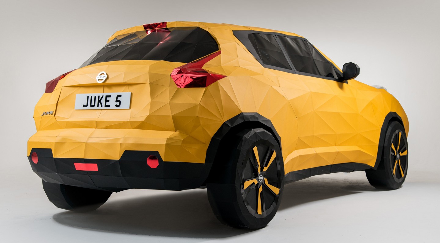 Английский художник Оуэн Гилдерслив создал полноразмерную бумажную копию Nissan Juke, на которую ушло около двух тысяч кусочков бумаги и более чем 200 часов времени. С высокой точность воспроизведены даже такие тонкие детали, как рисунок колёсных дисков, крылья, решётка радиатора, а также острые грани фар и зеркал заднего вида.