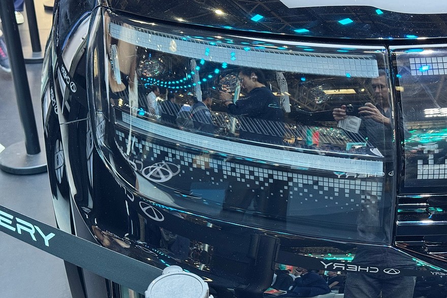 Главные фишки экстерьера – прямоугольные фары с пикселями, пиксельное же табло, которое объединяет головную оптику, внушительные бамперы и вертикальные задние фонари. Над лобовым стеклом установлен лидар, ведь Chery Tiggo X обещан автопилот Falcon 700. Размеры новинки не озвучены.