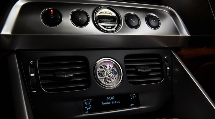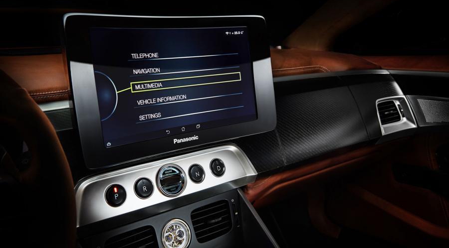У Vanquish Thunderbolt в салоне появилось несколько "фишек", которые отличают его от обычной версии модели: салон обтянут кожей итальянской фирмы Natuzzi, появились подставки под две бутылки шампанского, хронограф типа Skeleton от Maurice Lacroix. Главная "изюминка" — изогнутый дисплей мультимедийной системы Panasonic. Его в серийных автомобилях точно не будет.