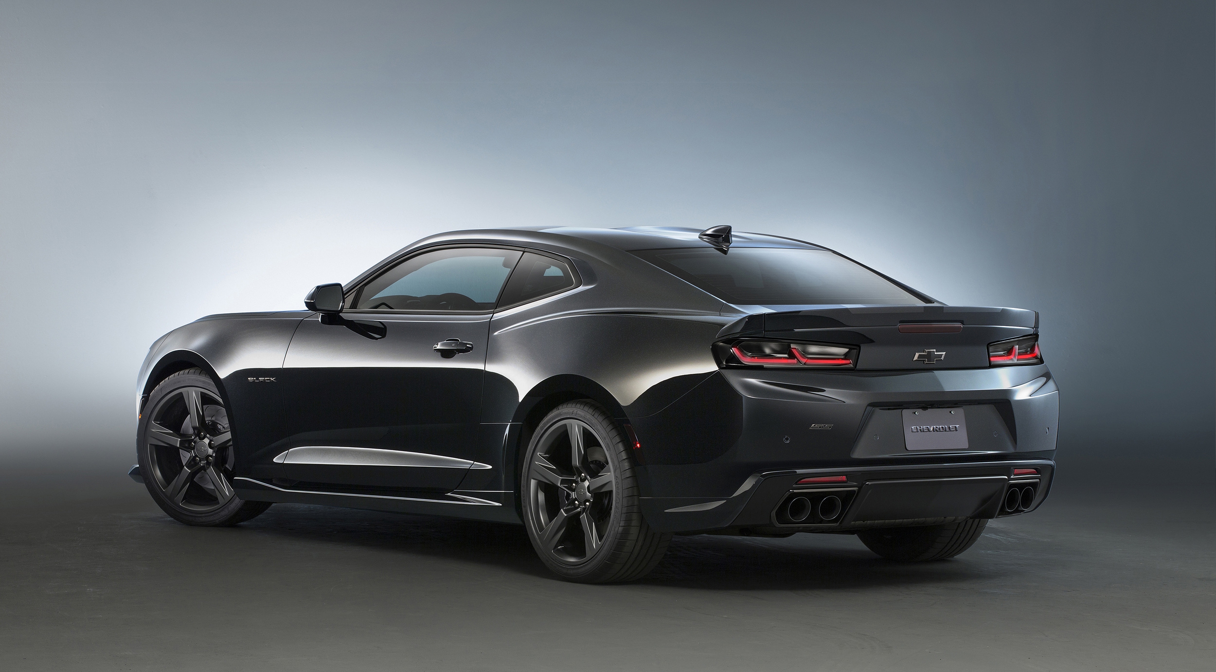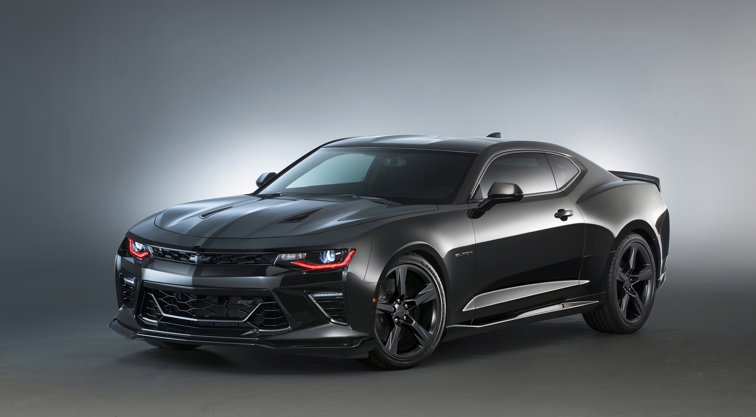 Зловещий Camaro Black отличается угольно-чёрным окрасом, заводской тонировкой, тёмными дисками, заниженной подвеской и красными дневными ходовыми огнями.