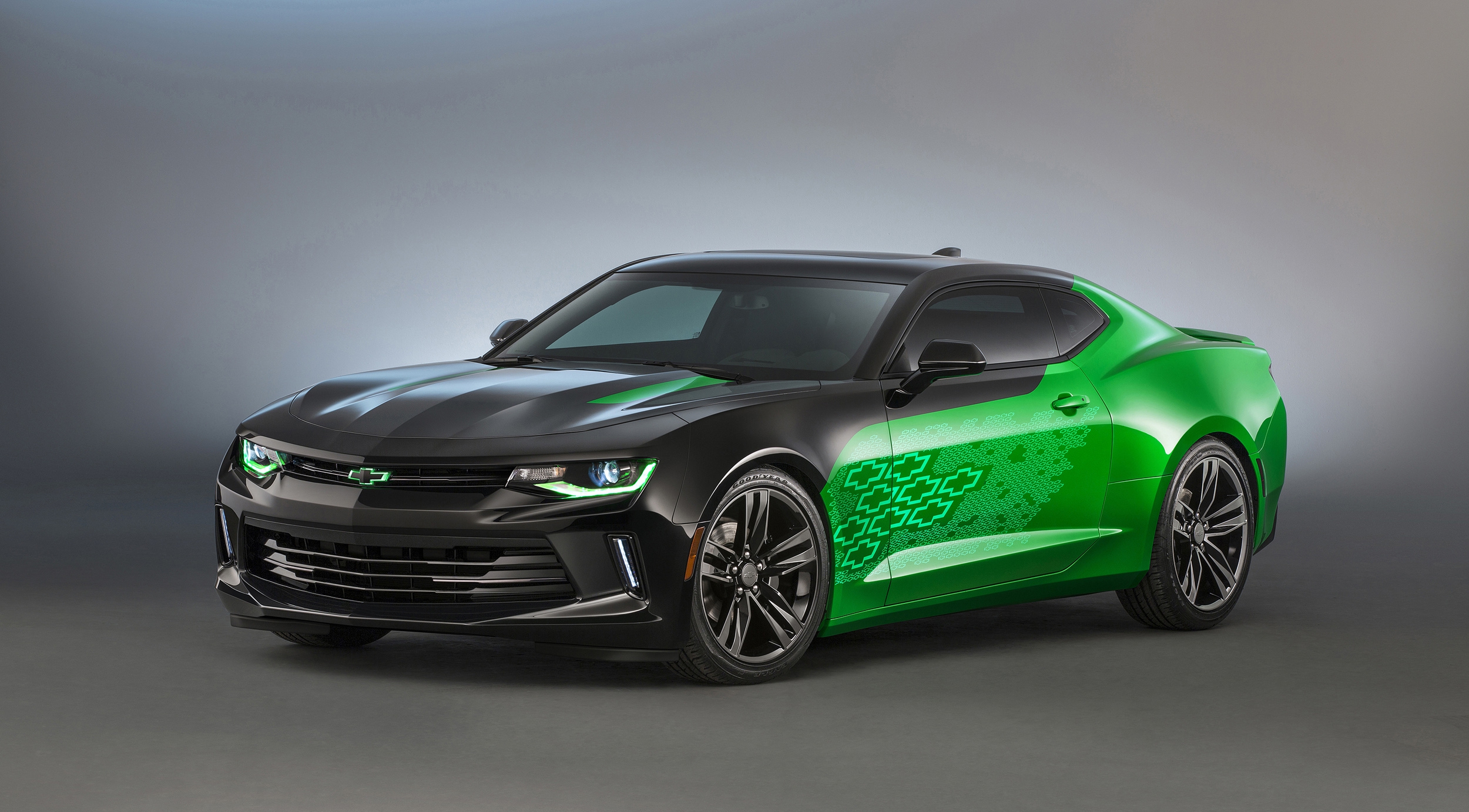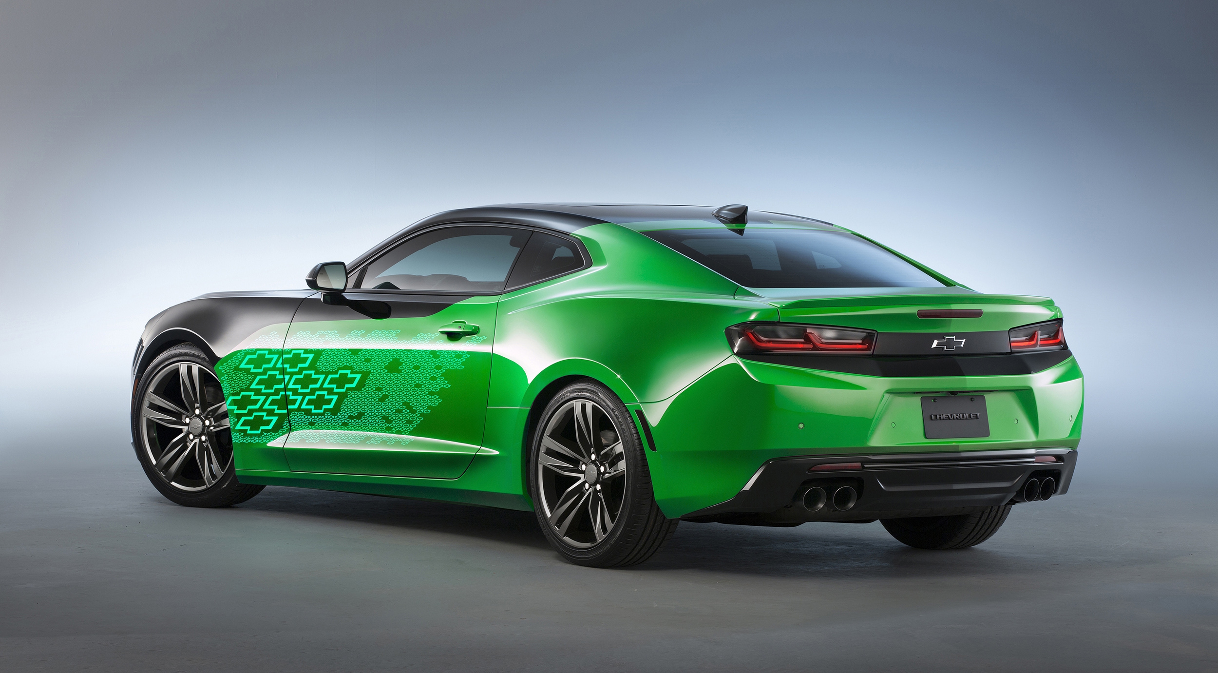 Главной особенностью чёрно-зеленого Camaro Krypton стала электролюминесцентная подсветка кузова, которая активируется нажатием кнопки. Динамично обновляемое свечение стилизованных шевролетовских лого напоминает языки пламени. Помимо завораживающей зеленовато-жёлтой подсветки, Krypton может похвастаться затемнёнными задними фонарями, кастомной решёткой радиатора и особым задним спойлером, а также двухрежимной выхлопной системой с окрашенными в чёрный патрубками.