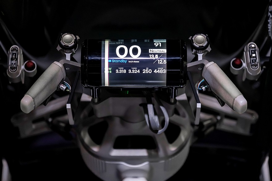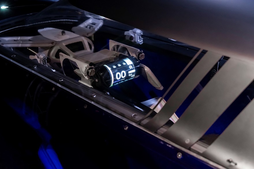 В одноместном кокпите Renault Filante Record 2025 пилот полулежит в лёгком кресле. Педалей нет, ускорением и торможением заведует многофункциональный штурвал в стиле «стимпанк», к нему же прикручен цилиндрический щиток приборов. Двери заменяет поднимающийся колпак, причём для удобства посадки/высадки рулевая колонка поднимается вместе с этим колпаком.