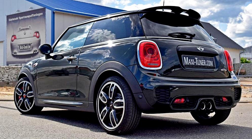 Чтобы улучшенной динамике соответствовал звук, в Maxi-Tuner разработали новую выхлопную систему с трубами диаметром 70 мм и заслонкой, регулирующей громкость. Если выбрать полный комплект, с банковской карты убудет чуть менее двух тысяч евро, что не так уж много в сравнении со стоимостью автомобиля. Напомним, цена на Mini Cooper JCW в России начинается от 27 500 евро.