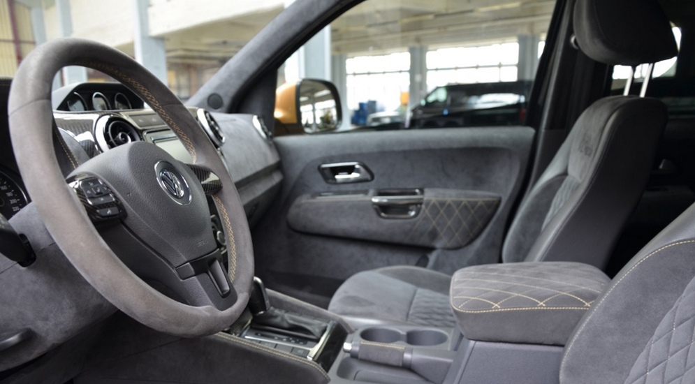 В салоне «немца» использованы кожа и алькантара, также в интерьере имеются вставки из карбона. В список оборудования Amarok Desert Edition от ателье MTM вошла новая мультимедийная система с GPS-навигацией.