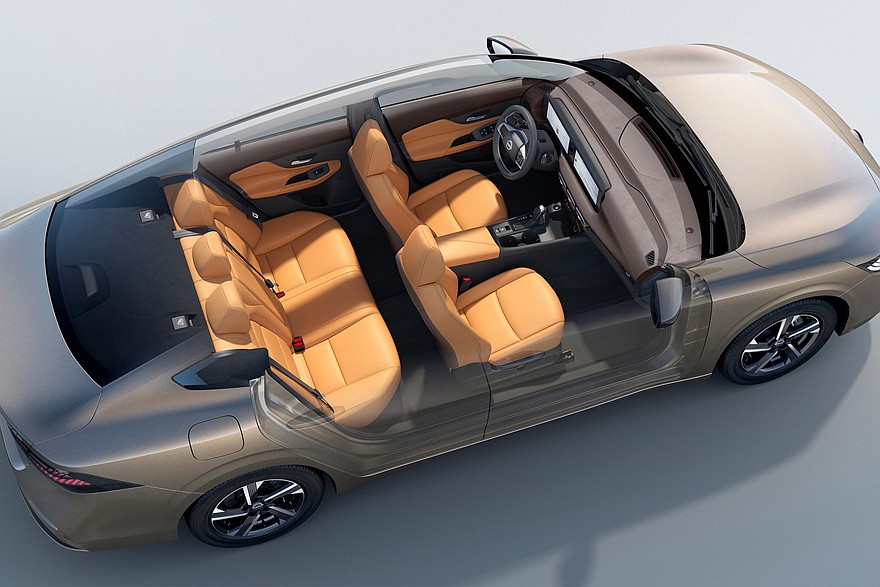 В салоне новой модели Sylphy установили другую переднюю панель, двухспицевый руль, табло (каждый дисплей диагональю 12,3 дюйма) и сенсорный блок управления «климатом». В богатых комплектациях еще есть беспроводная зарядка для смартфона на 50 Вт, подогрев и вентиляция передних сидений, адаптивный круиз-контроль, системы автоторможения и слежения за разметкой.