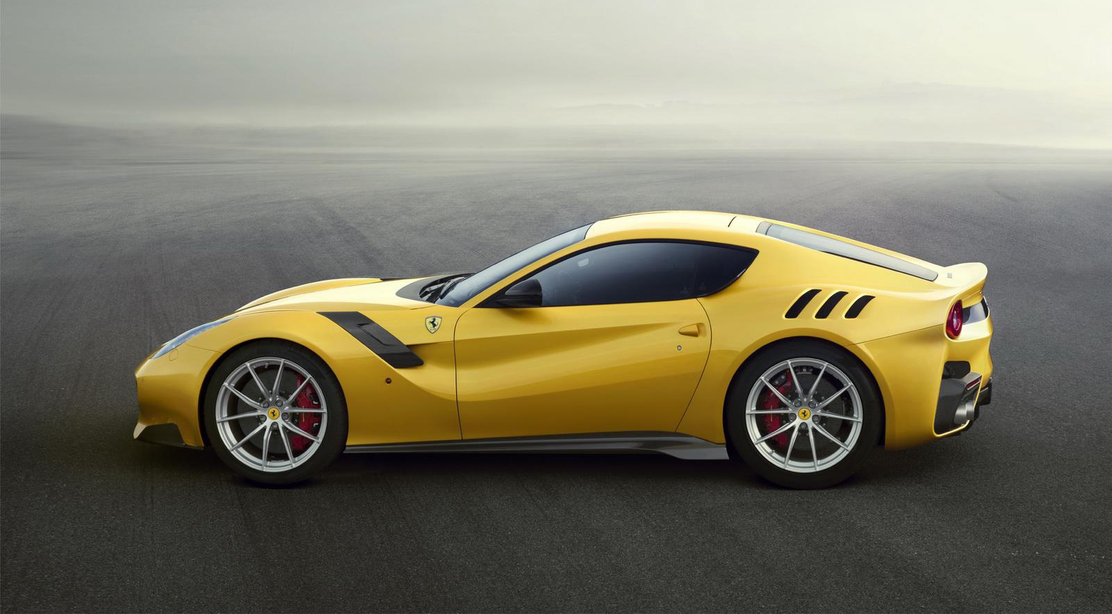 Отдельное слово стоит сказать об аэродинамических свойствах автомобиля – они стали практически в два раза лучше, чем у F12 berlinetta. Прижимная сила на скорости 200 км/ч стала больше на 107 килограммов и составляет теперь 230 кг. Задний спойлер стал больше на 60 мм и установлен теперь на 30 мм выше. Диффузоры, сплиттеры, закрылки – почти полностью переделанный боевой комплект для достижения впечатляющих показателей.