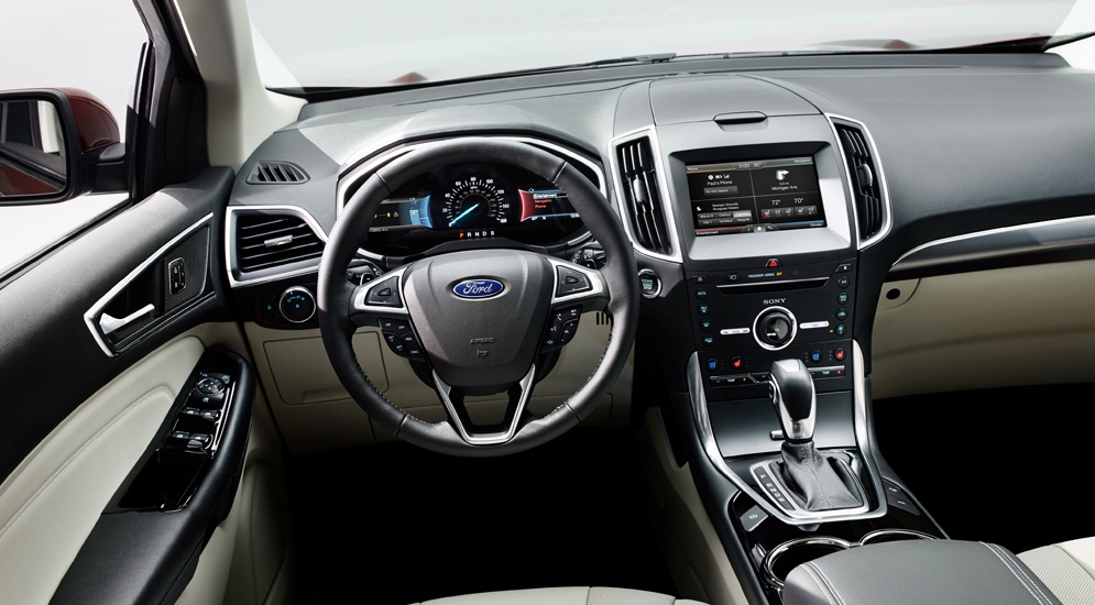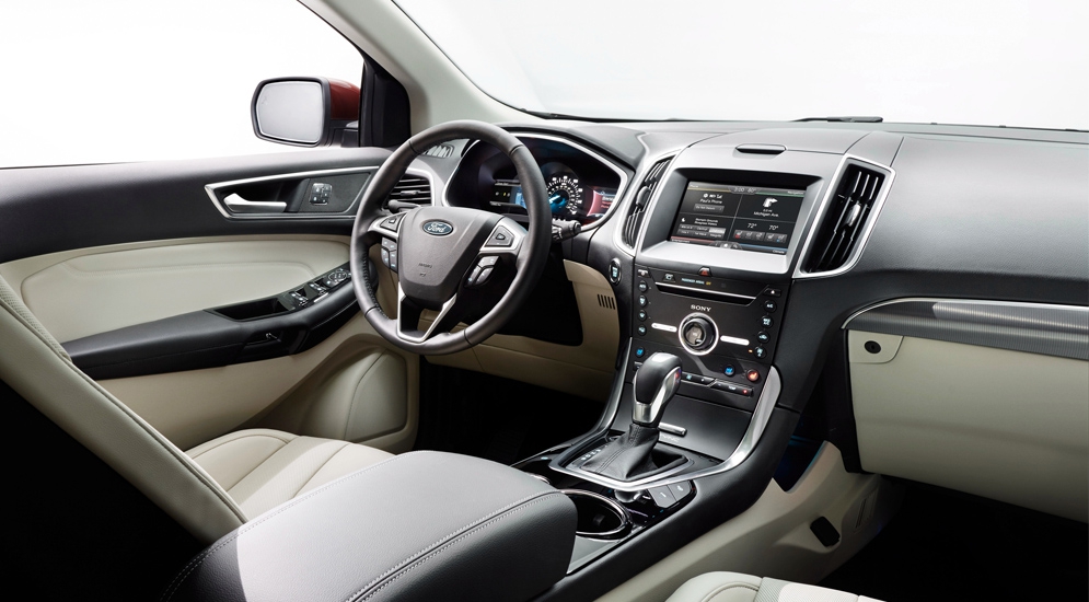 По словам руководителя отдела маркетинга Ford Europe Роэланта де Ваарда, Edge может похвастать самым просторным в классе салоном, а также обширным набором электроники. В комплектацию автомобиля входят адаптивное рулевое управление, активная система шумоподавления и широкоугольная камера переднего обзора. SUV также оснащается системами автоматического торможения и мониторинга слепых зон.