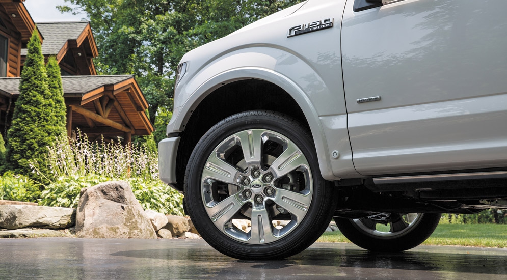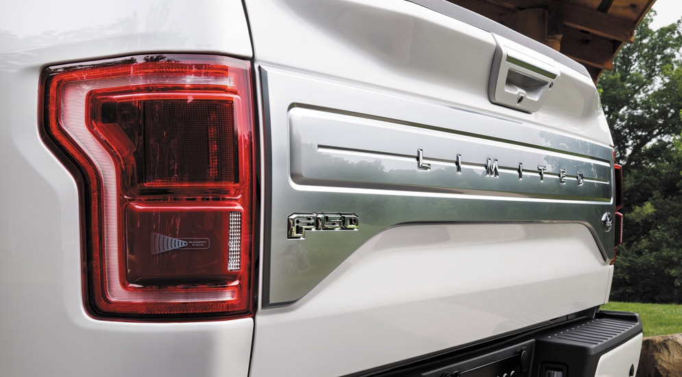 Ford F-150 Limited – король горы, по сравнению с которым пикапы в исполнении Platinum и King Ranch выглядят бледновато. Сверкающий полированный хром украшает решётку радиатора, дверные ручки и откидной борт кузова. Ослепляют блеском и 22-дюймовые колесные диски, а также насадка на выхлопную трубу.