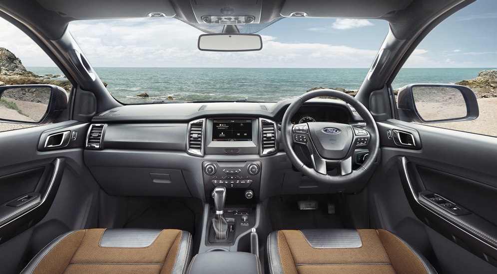 Следуя актуальным тенденциям, дизайнеры Ford как могли приблизили салон нового Ranger к легковым моделям. Тут есть и мультимедийная система с восьмидюймовым экраном, и климат-контроль, причем "заказать" температуру в салоне или любимый трек можно голосом. Водителя и пассажиров окружает софт-тач пластик, на сиденьях появились акценты в виде оранжевой строчки.