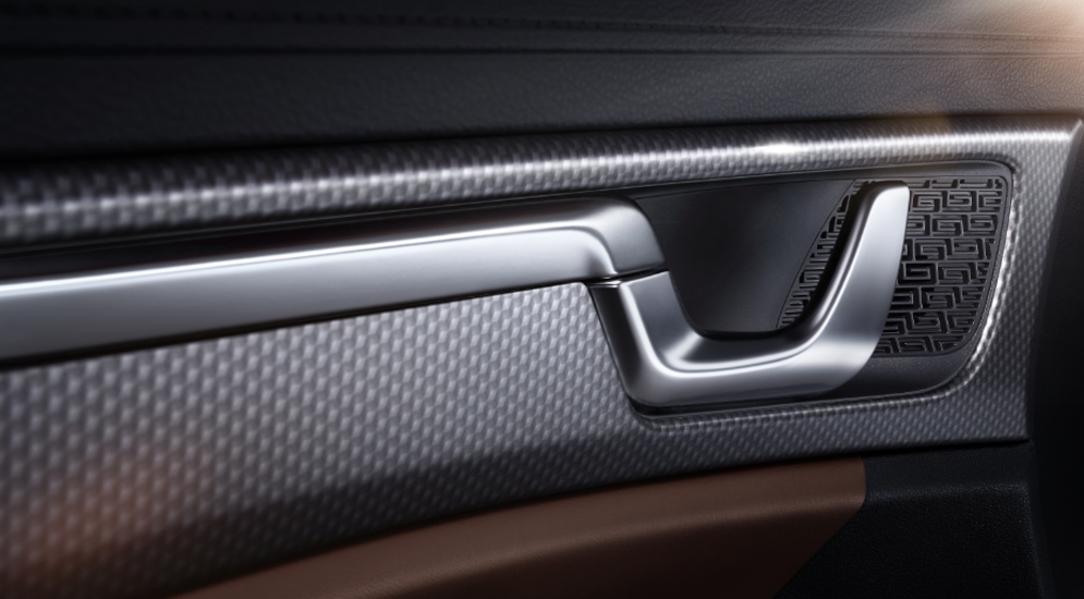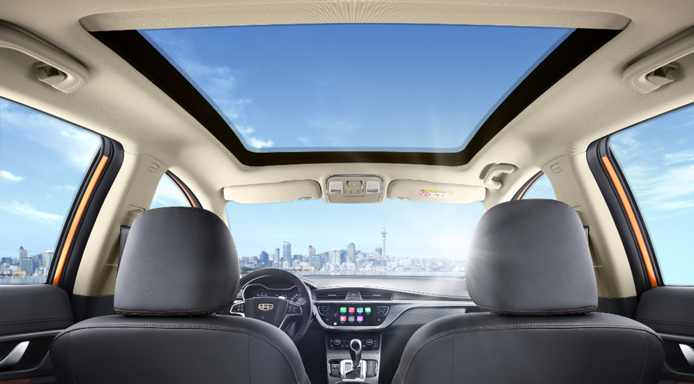 Интерьер у новинки получился лаконичным, но современным. На центральной консоли установлен 8-дюймовый сенсорный дисплей с поддержкой Apple CarPlay. На приборной панели также имеется небольшой цветной экран, на который выводится вся необходимая водителю информация об автомобиле. В список оснащения Geely Emgrand Cross (в Китае модель будут продавать под именем Emgrand GS) могут входить большой панорамный люк, боковые подушки безопасности и кнопка запуска двигателя.
