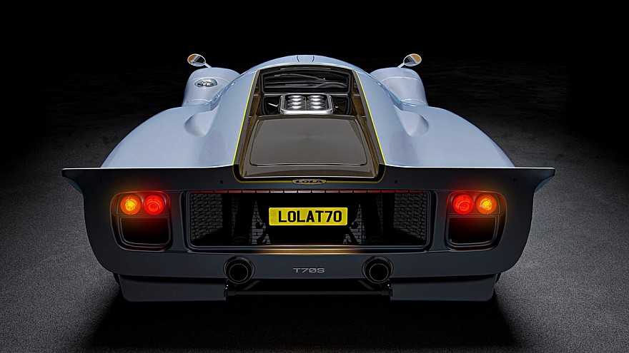 Дорожная Lola T70S GT получила более современный силовой агрегат, а именно 6,2-литровый Chevrolet V8 (507 л.с., 617 Нм) и 6-ступенчатую МКП Hewland, разгон до 100 км/ч занимает 2,9 с, разгон до 200 км/ч — 9,3 с, максимальная скорость — 322 км/ч. Двухместный салон версии GT имеет более изысканную отделку из алькантары, кондиционер и место для багажа, но в целом обстановка спартанская, аналоговая, без сенсорных экранов и прочих развлекушек. Рычаг переключения передач находится справа от кресла водителя даже у праворульных версий.