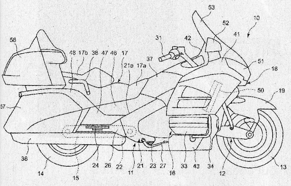 Компания Honda в данный момент работает над новой конструкцией передней подвески для своего туристического флагмана Gold Wing, на котором уже на протяжении многих десятилетий устанавливается классическая телескопическая вилка. Судя по эскизам, новая конструкция не являет собой чего-то революционного. Это хорошо известная конструкция – длиннорычажная вилка толкающего типа, несколько модернизированная относительно классической схемы, которую применяли ещё в середине прошлого века, а сейчас подобная конструкция используется, например, на мотоциклах «Урал» Gear-Up.