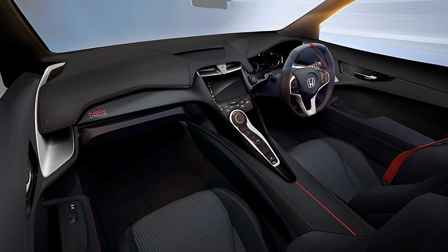 Салон у Honda NSX Tribute структурно такой же, как у стокового суперкара, но форма передней панели изменена, центральные воздуховоды стали более изящными, а боковые заменены имеющими контрастную окраску профилированными каналами без решёток. Центральный тоннель и дверные карты тоже перекроены, они стали проще и элегантнее. Отделочные материалы полностью новые, их комбинация и цвета подбираются под конкретного заказчика, но в основном это замша и углепластик.