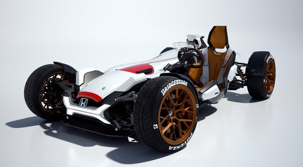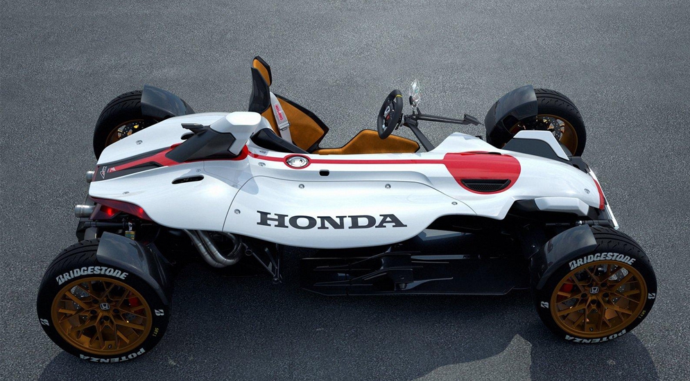 Экстерьер новинки решён в стиле формульного болида Honda RA272 образца 1965 года. Однако кресло водителя располагается не посередине, а подвешено снаружи кузова и практически не защищено. Такая конфигурация должна обеспечить ощущение свободы, как на мотоцикле, в сочетании с автомобильной управляемостью.