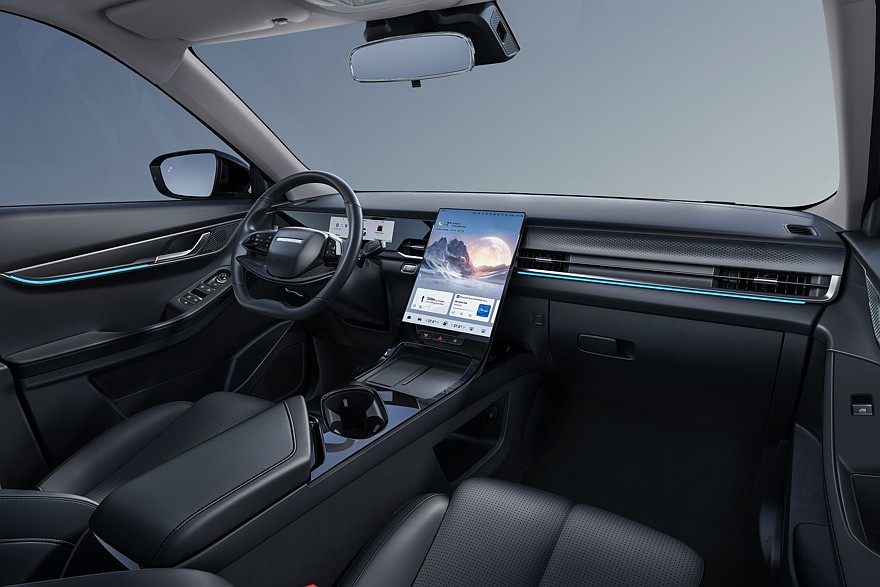 Техника – без сюрпризов, ведь J6 делит базу с кроссовером Omoda C5. Силовых установок будет две: 1,5-литровый турбомотор мощностью 147 л.с. с 6-ступенчатым роботом, а также 1,6-литровый наддувный двигатель мощностью 150 л.с. с 7-ступенчатым роботом. Первая конфигурация будет доступна с передним приводом, вторая – с полным. Система кругового обзора на 540 градусов показывает не только окружение, но и пространство под автомобилем – полезно на сложном рельефе.