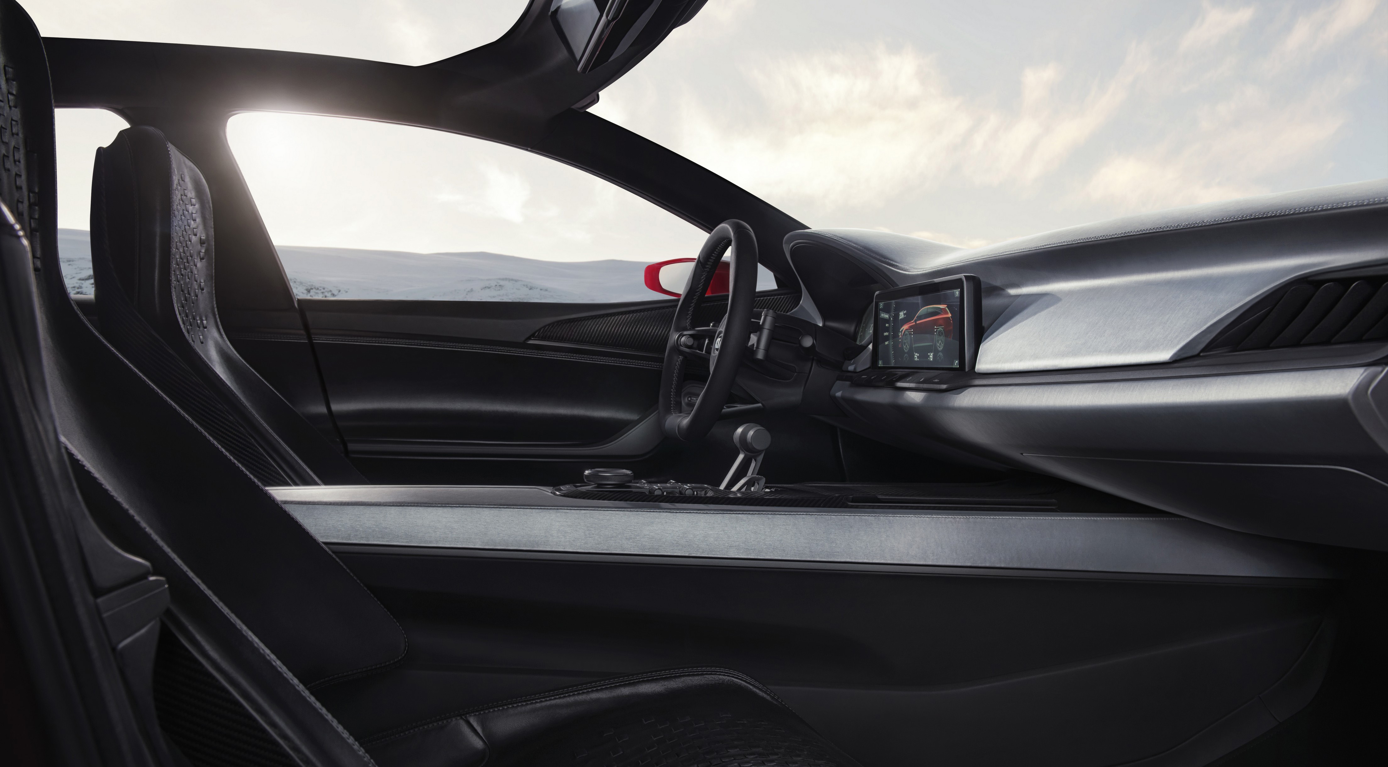 У Kia Sportspace цифровая приборная панель, вместо зеркала заднего вида — экран, на который выводится информация с камеры заднего вида, установлена мультимедийная система, а в подголовниках задних пассажиров имеются крепления под планшеты.