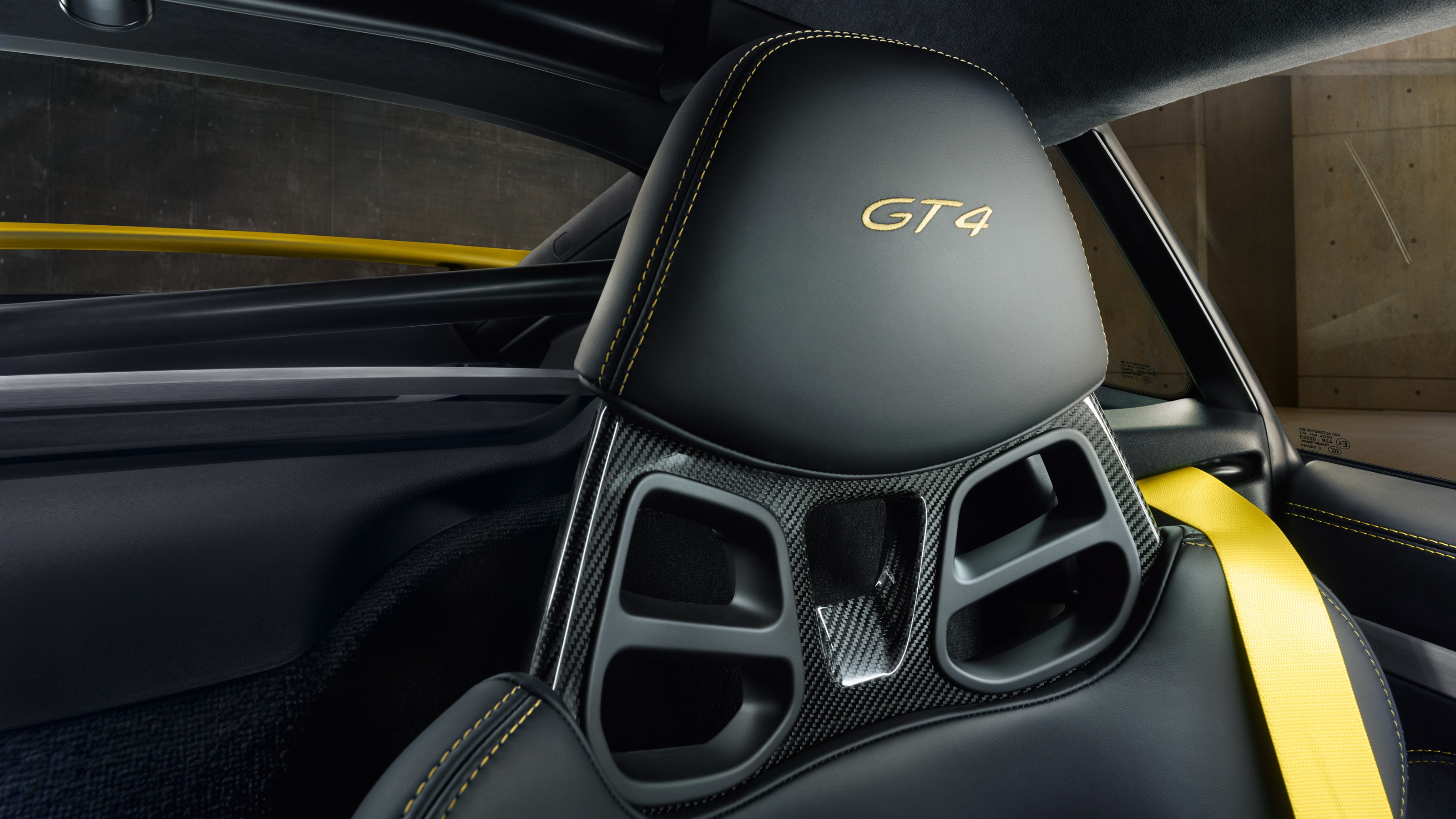 Дизайн Cayman GT4 преследует не только эстетическую функцию — он идеален, как говорят в компании, с точки зрения аэродинамических характеристик: большие воздухозаборники служат не только для придания облику купе агрессии, но и для эффективного охлаждения радиаторов, центральный воздухозаборник под крышкой багажника обеспечивает дополнительную прижимную силу на передних колесах, заднее неподвижное антикрыло на алюминиевых стойках вкупе со спойлером с интегрированной кромкой отрыва потока служит для создания "ощутимой прижимной силы задней части" Cayman GT4.