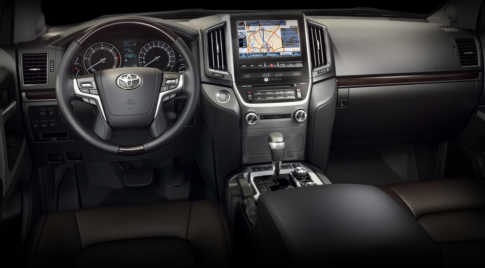 В оснащение внедорожника входят полностью светодиодная система головного освещения, фоновая подсветка лунного цвета, беспроводная зарядка для смартфонов, совместимая с устройствами, поддерживающими протокол Qi, мультимедийная система Toyota Touch, премиальная аудиосистема JBL с тачскрином. Land Cruiser 200 получил функцию панорамного видеообзора, режим "прозрачного капота", который позволяет видеть препятствия непосредственно перед колёсами.