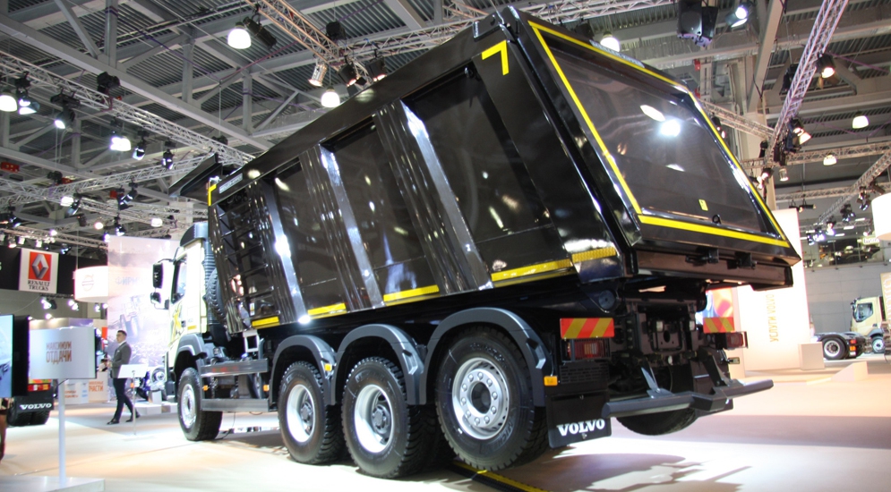 Представители шведской компании представили четырёхосный самосвал Volvo FMX, который построен по схеме "1+3". При этом задняя ось в трёхосной задней тележке является подруливающейся и подъёмной. Отмечается, что данная схема сейчас используется многими производителями самосвалов. Однако это не единственный экспонат Volvo Trucks... производитель привёз действительно уникальный автомобиль.