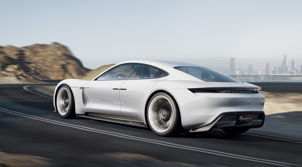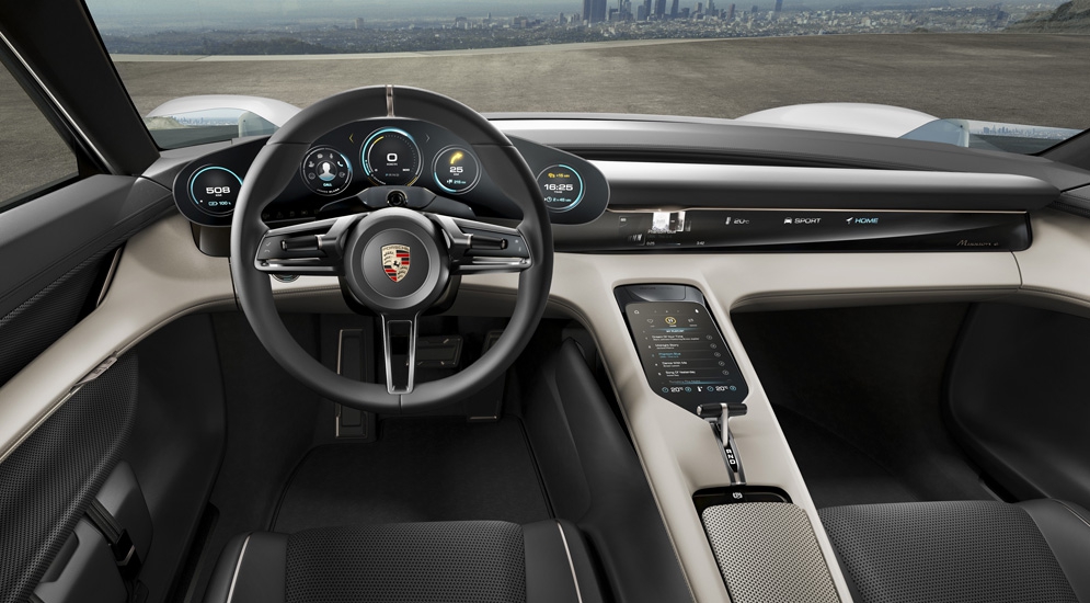 Четырёхдверный концепт Mission E выглядит крайне футуристично, оставаясь при этом стопроцентным Porsche. В салоне автомобиля установлены четыре индивидуальных анатомических кресла. Впрочем, дизайнерские решения здесь далеко не главное, ведь самую большую интригу несёт в себе техническая начинка авто. Разгон до "сотни" за 3,5 секунды обеспечивает электрическая силовая установка мощностью 600 лошадиных сил. Запас хода составляет немалые 500 километров.