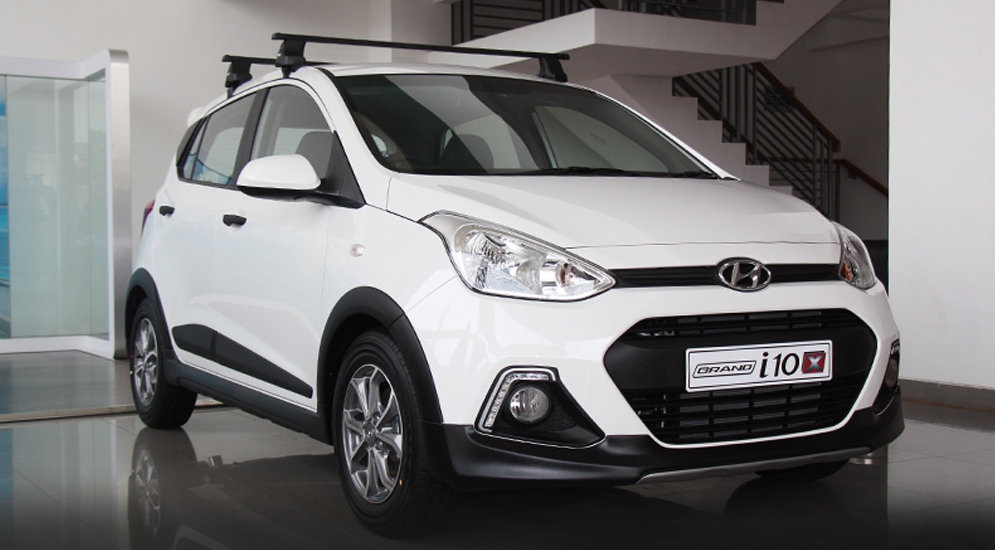 От обычного хэтчбека Hyundai Grand i10X отличают увеличенный дорожный просвет, новые бамперы (передний с дневными ходовыми огнями), дополненные обвесом из неокрашенного пластика по периметру. На глушителе появилась хромированная насадка, а на крыше – рейлинги.